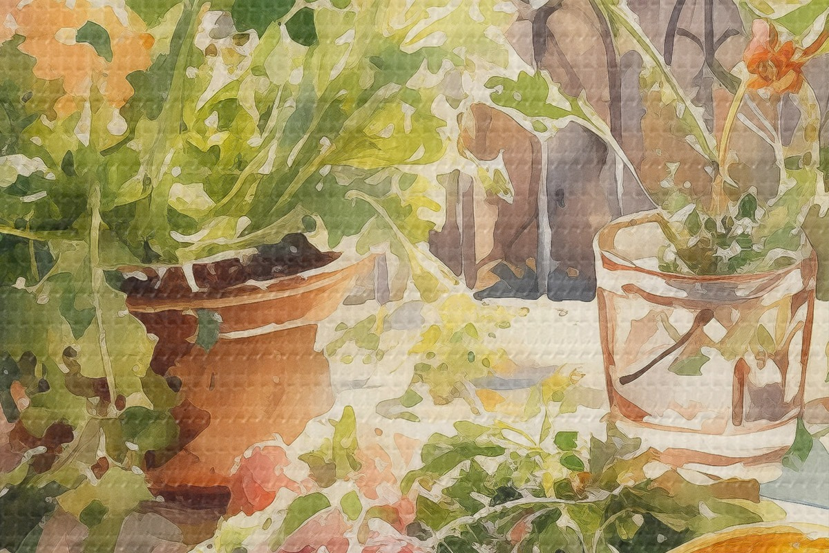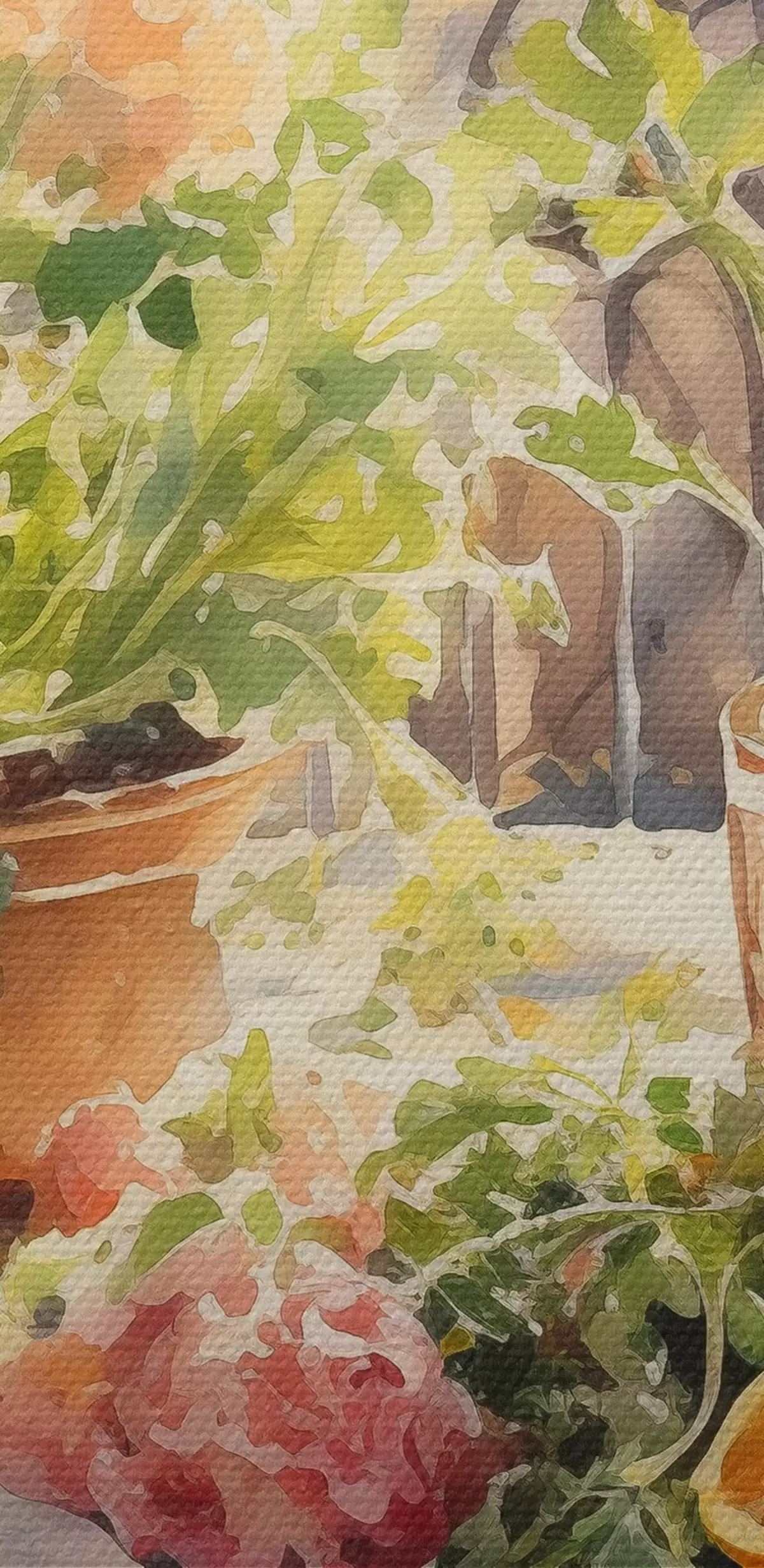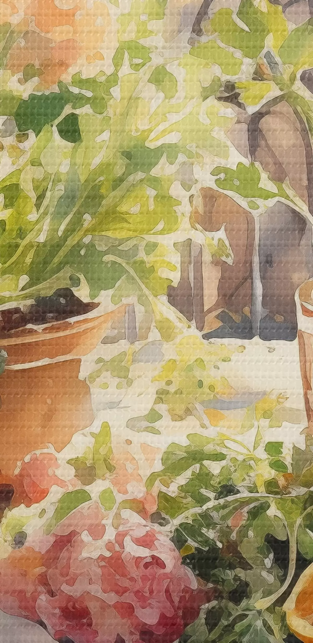Image Dîner aquarelle, vue de la ville, fleurs, nature, salade verte Nr r41166