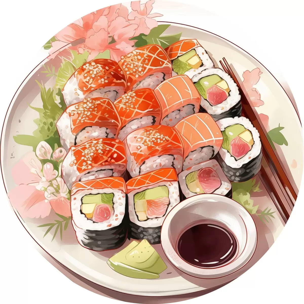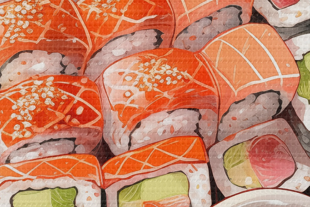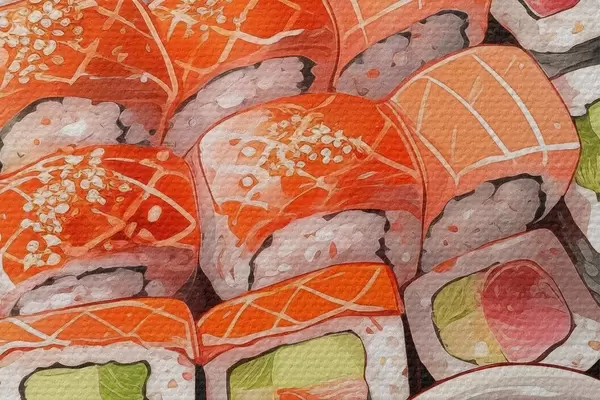 Image Aquarelle assiette de sushi, saumon, délicieux Nr r41180