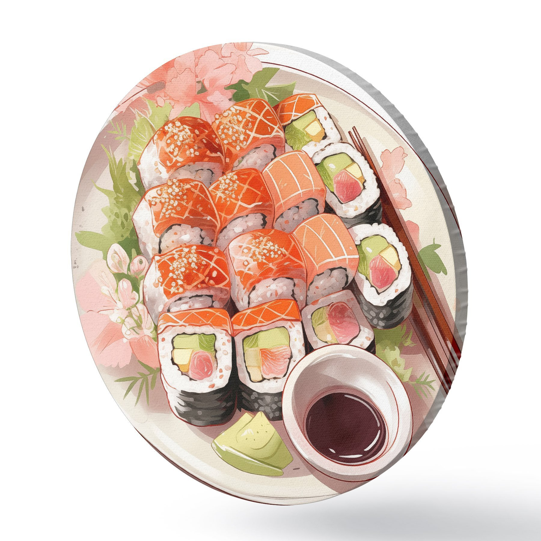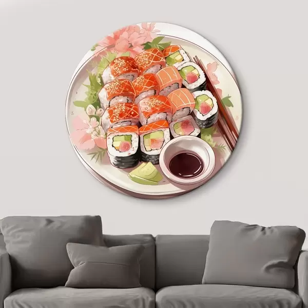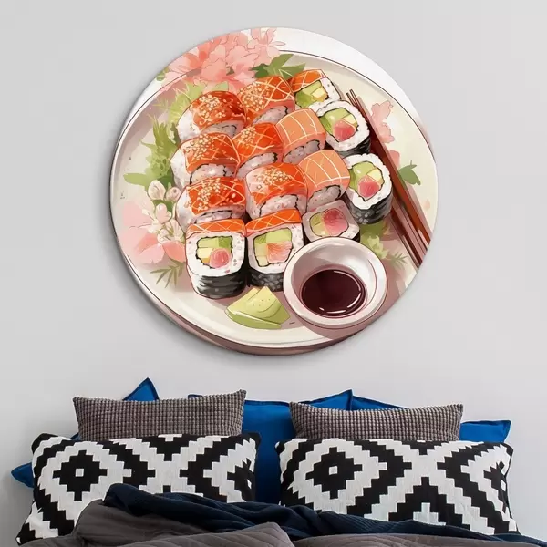 Tableaux ronds Aquarelle assiette de sushi, saumon, délicieux r41180