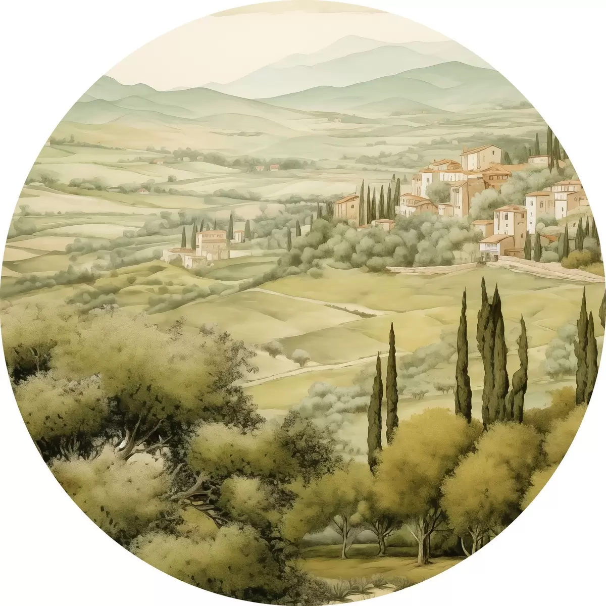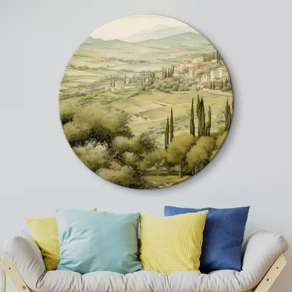 Tableaux ronds Paysages de Toscane, aquarelle, style boho r41220