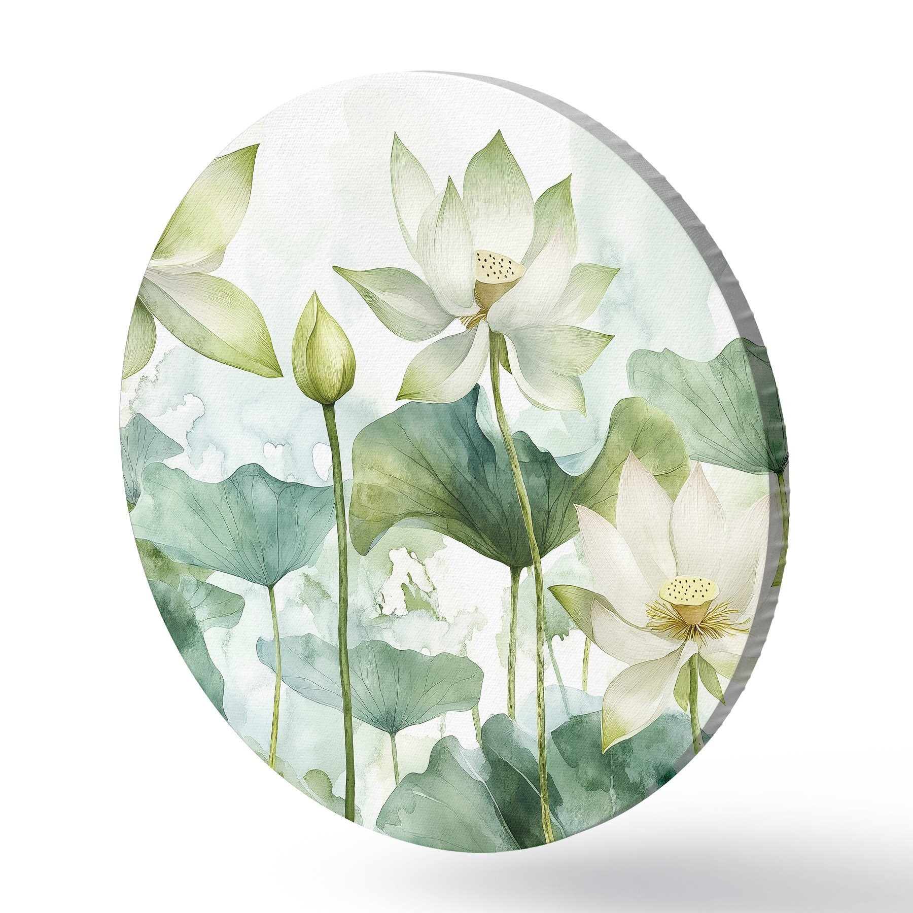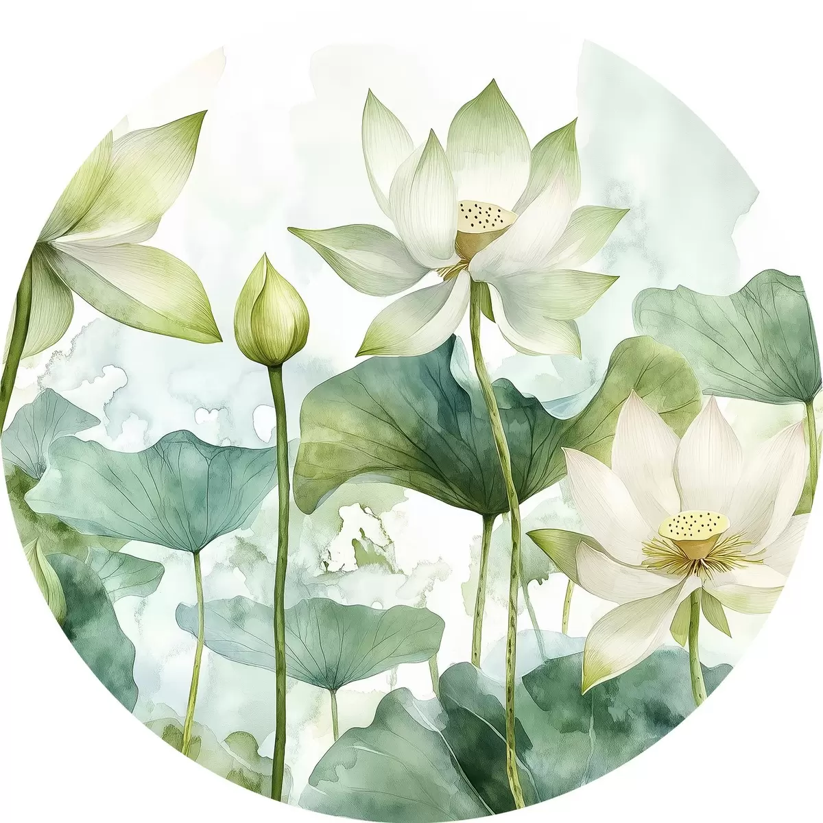 Tableaux ronds Lotus aquarelle, verdure luxuriante r41226