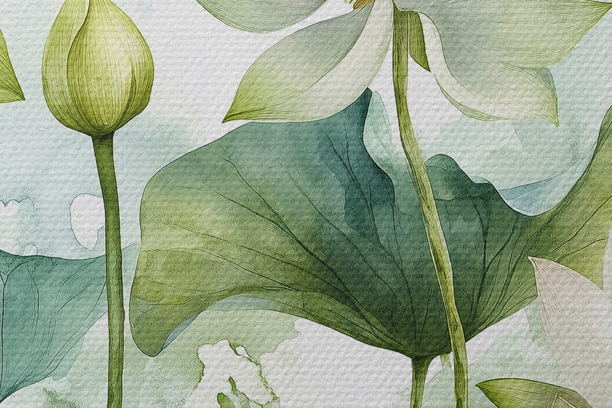 Image Lotus aquarelle, verdure luxuriante Nr r41226