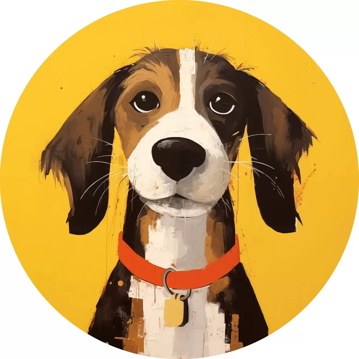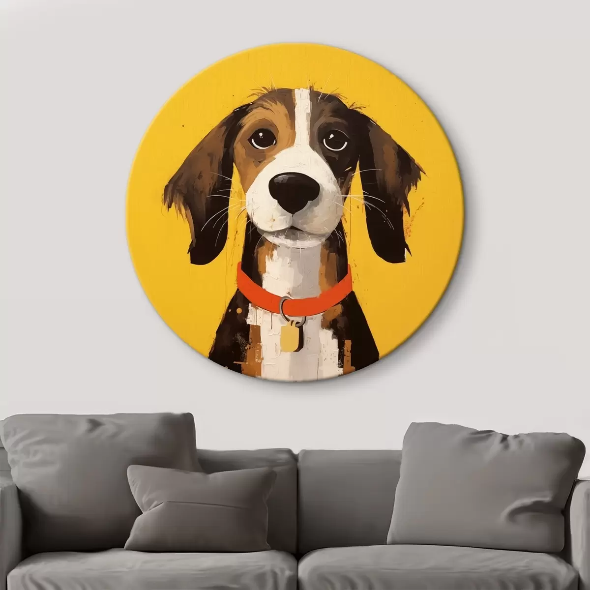 Tableaux ronds Portrait d'un chien sur fond jaune r41232