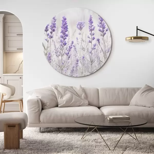 Tableaux ronds Champ de fleurs violettes et lavandes sur un fond texturé flou r41265