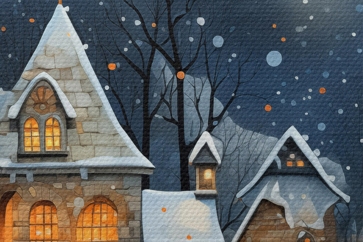 Image Maisons dans la neige sur fond de ciel étoilé Nr r41276