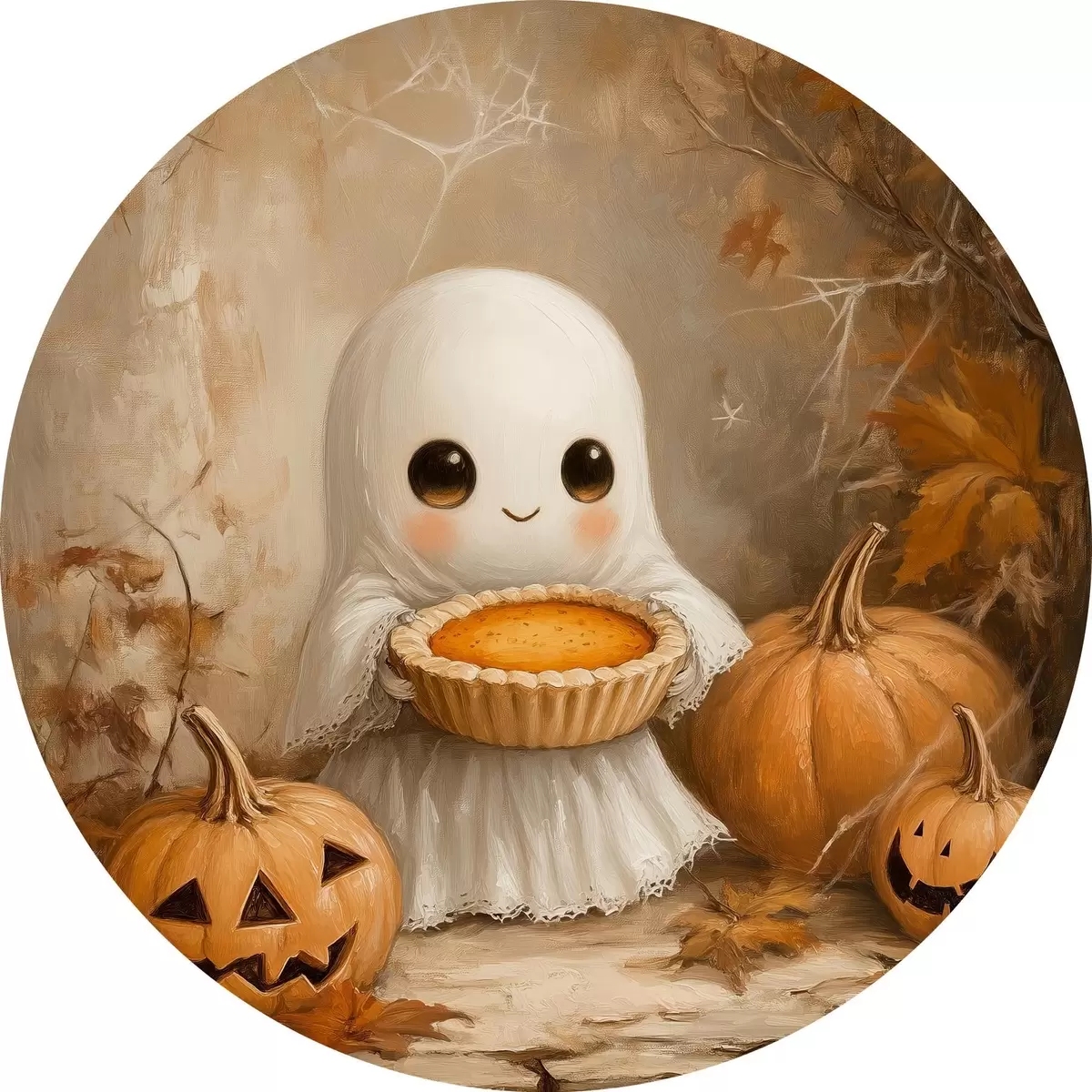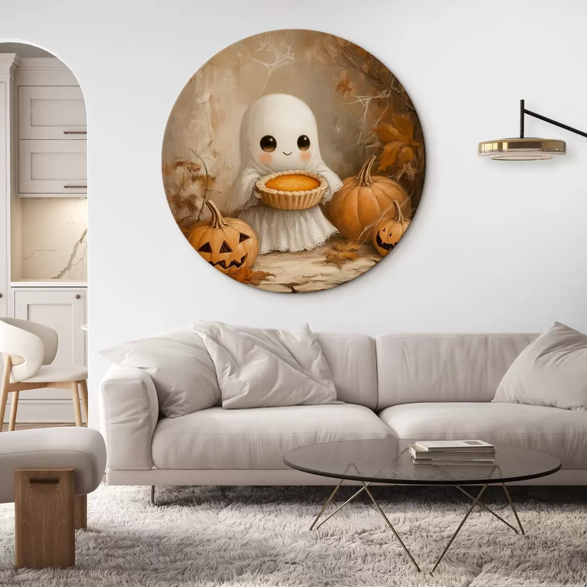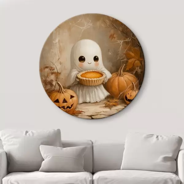 Tableaux ronds Fantôme tenant une tarte à la citrouille r41340