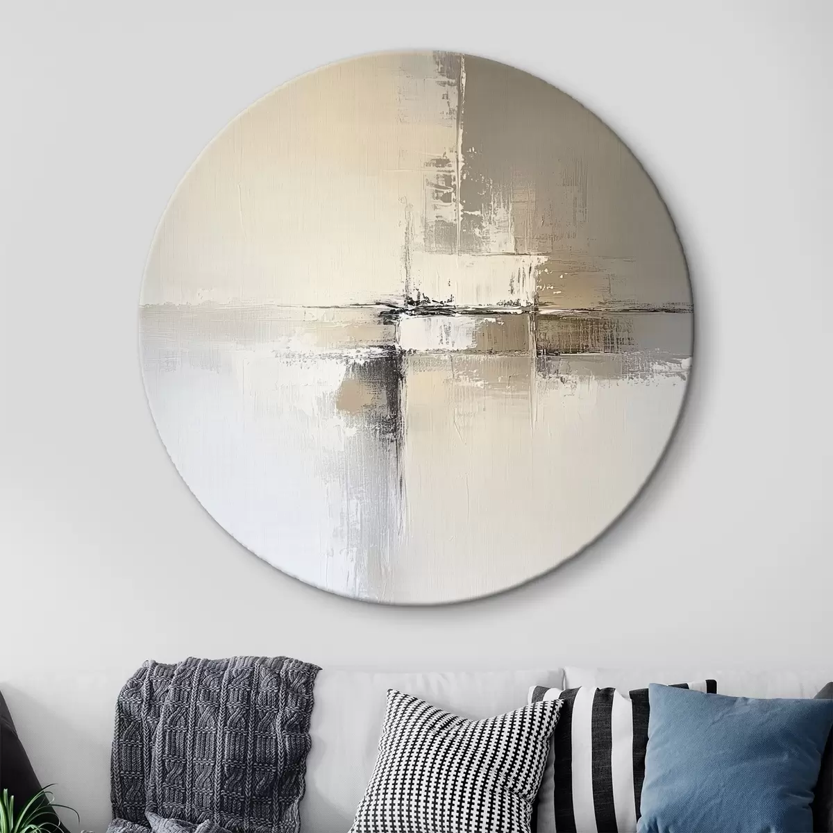 Tableaux ronds Abstraction dans les tons de beige r41353