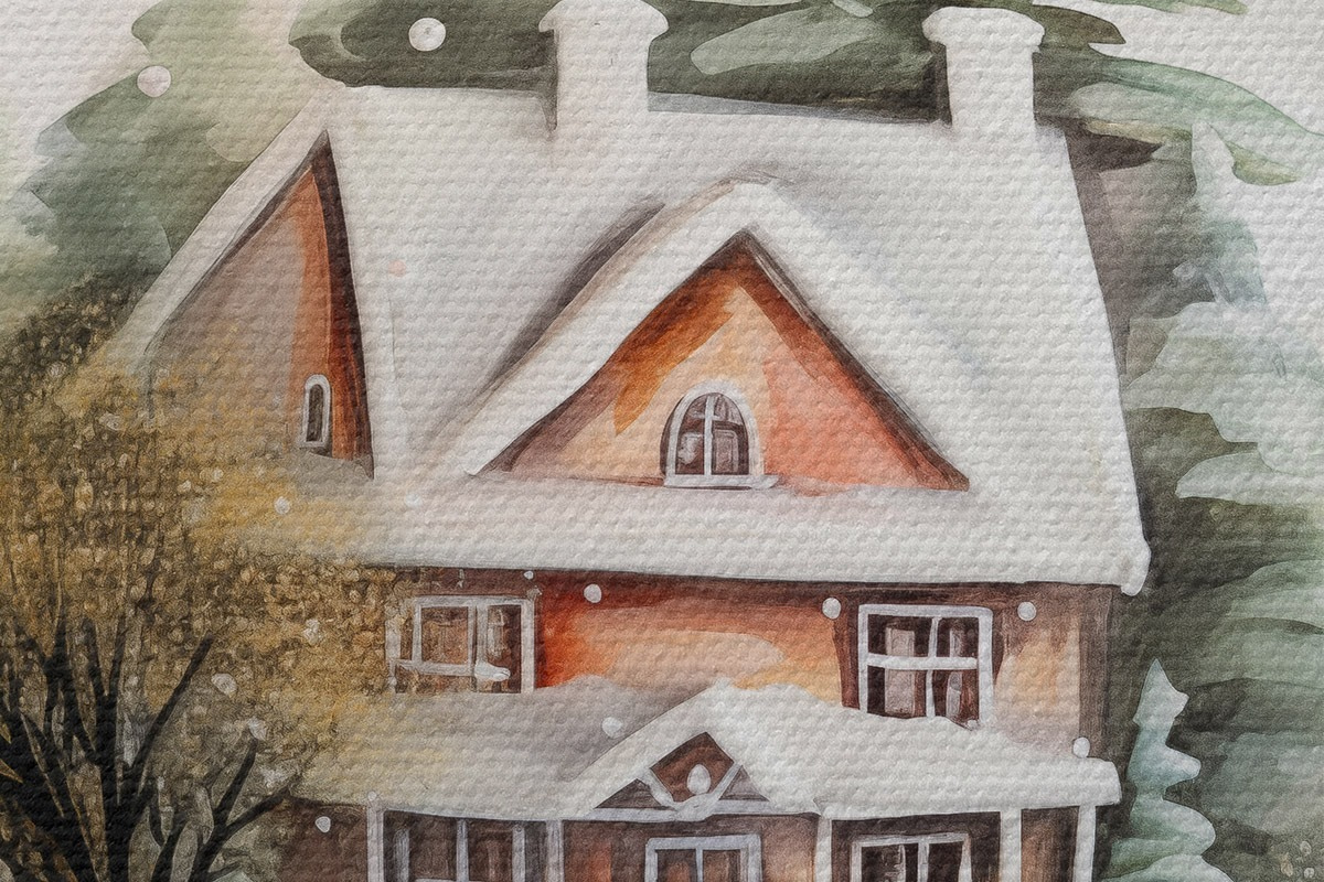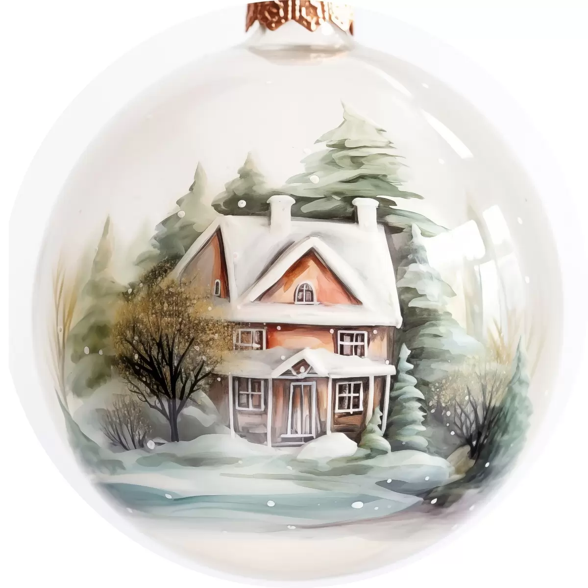 Image Boule de cristal avec maison aquarelle et arbres dans la neige Nr r41365