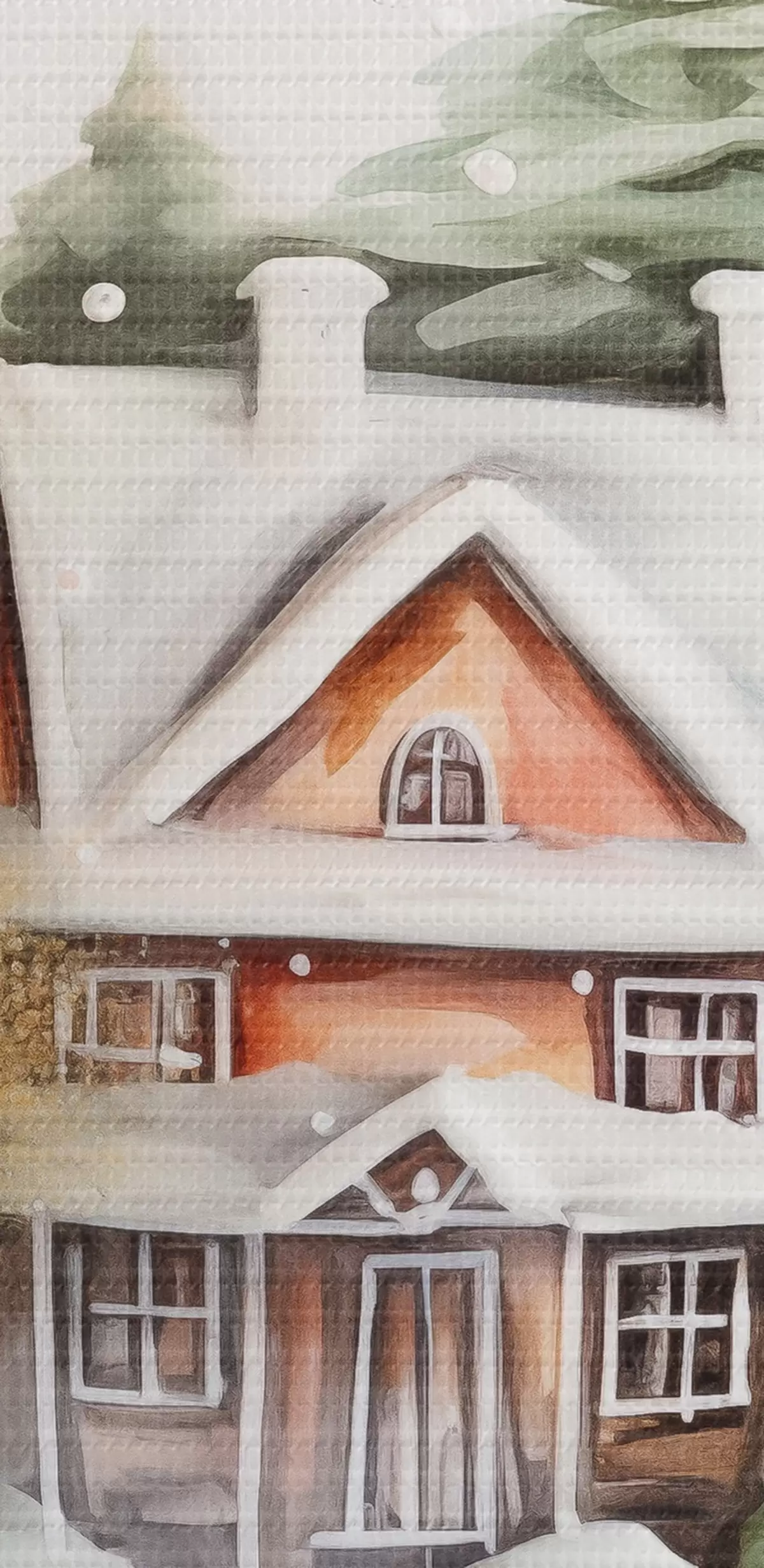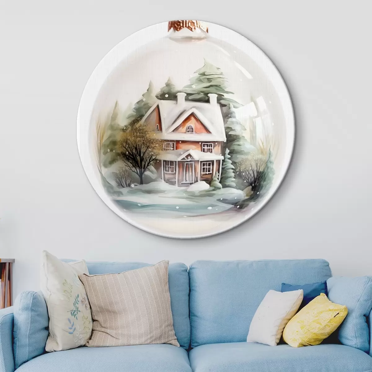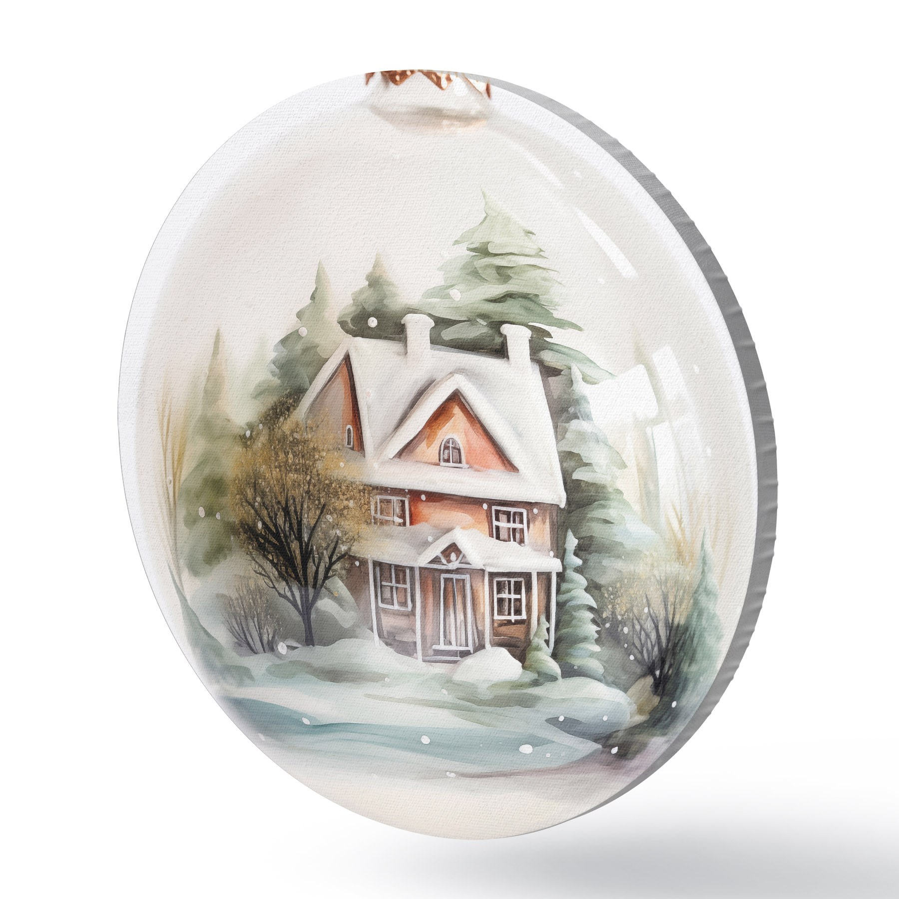 Tableaux ronds Boule de cristal avec maison aquarelle et arbres dans la neige r41365