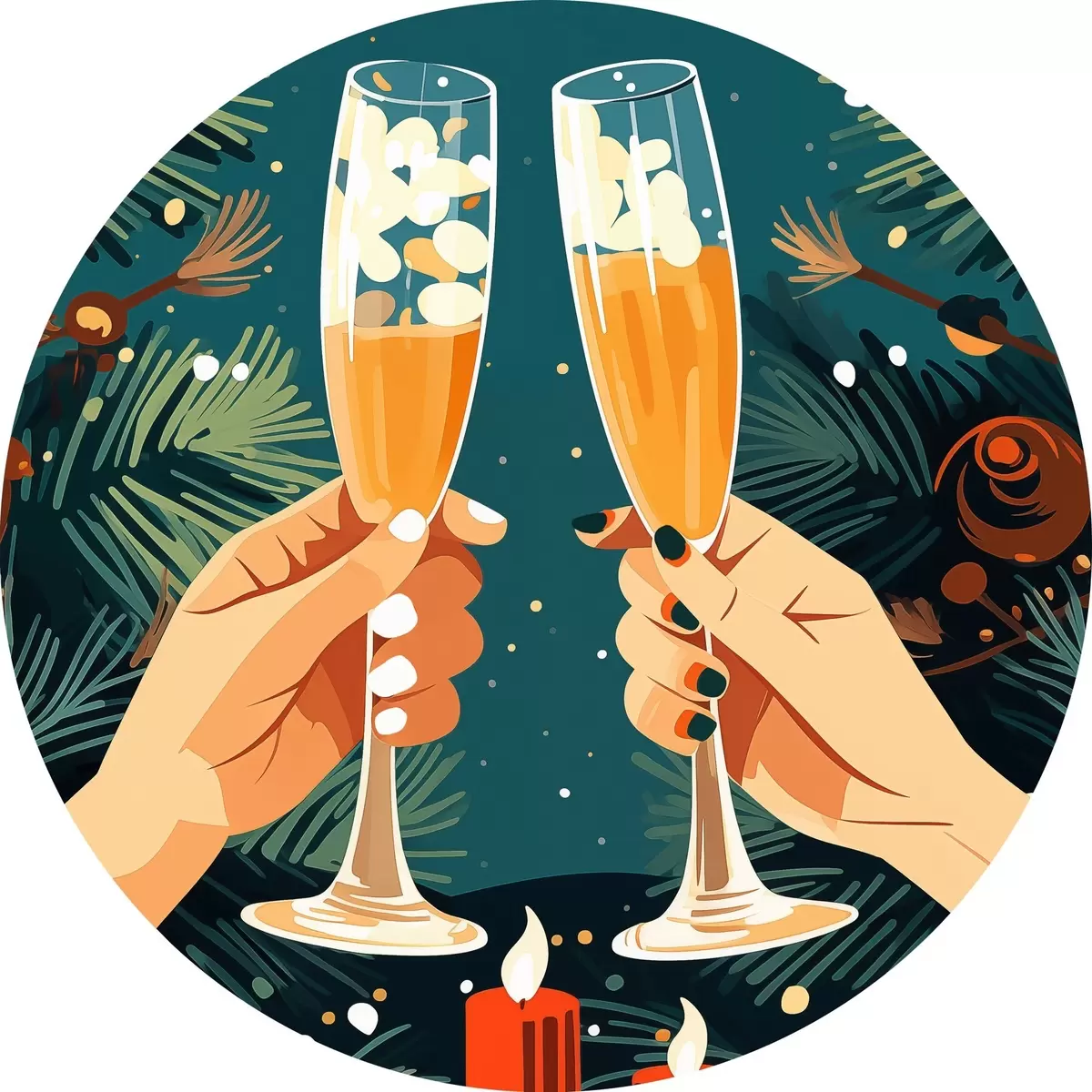 Tableaux ronds Célébration, glaces, lumières fistives, floral, cannelle, bougies, pop art r41376