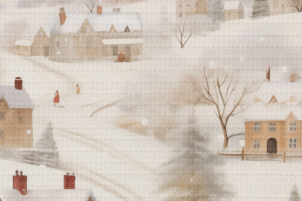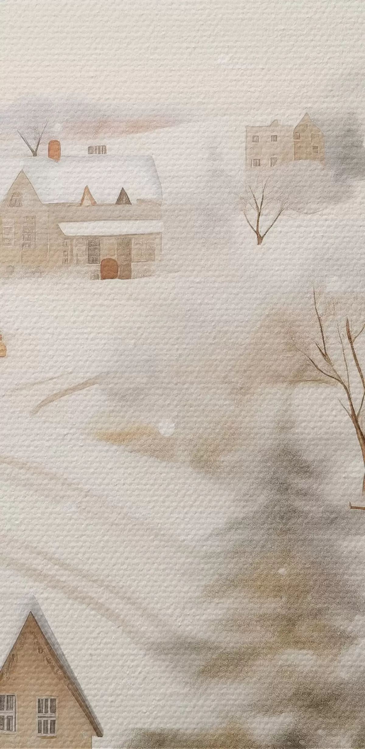 Image Village d'hiver, aquarelle, flocons de neige, couleurs douces, arbres, paysage Nr r41381