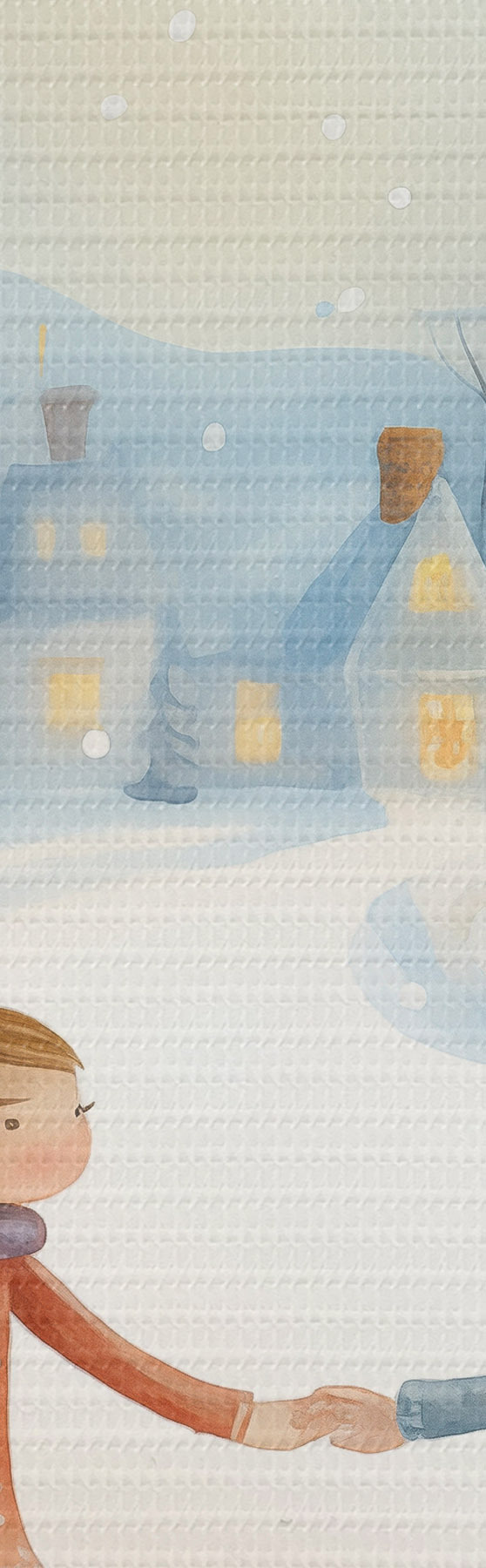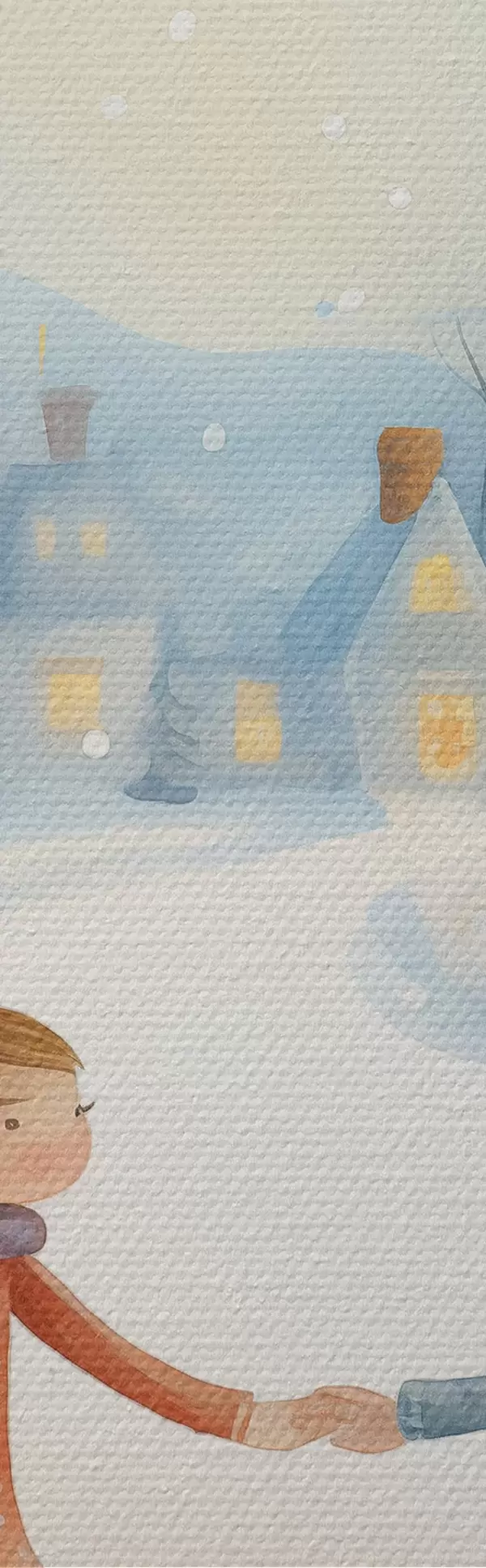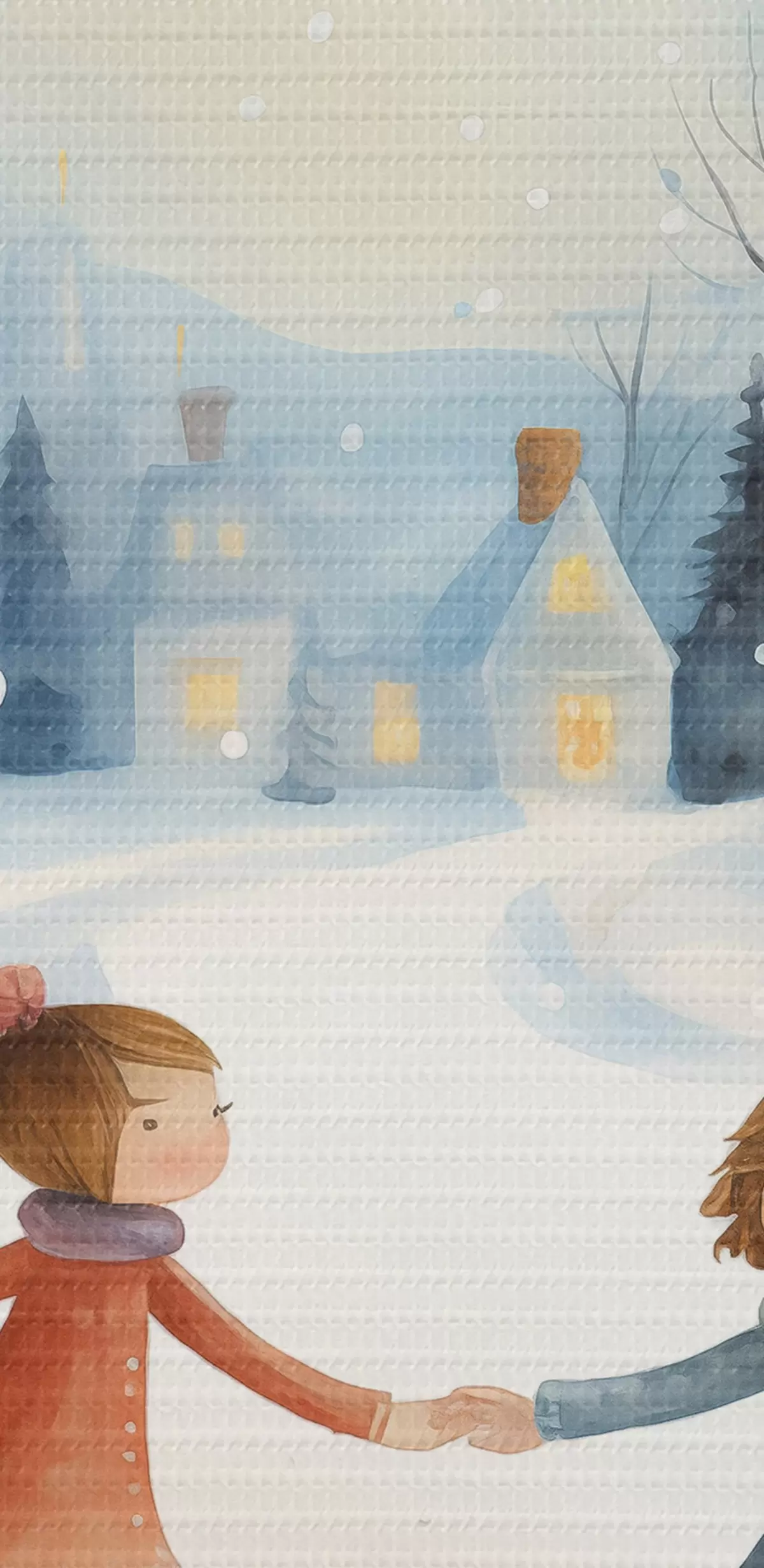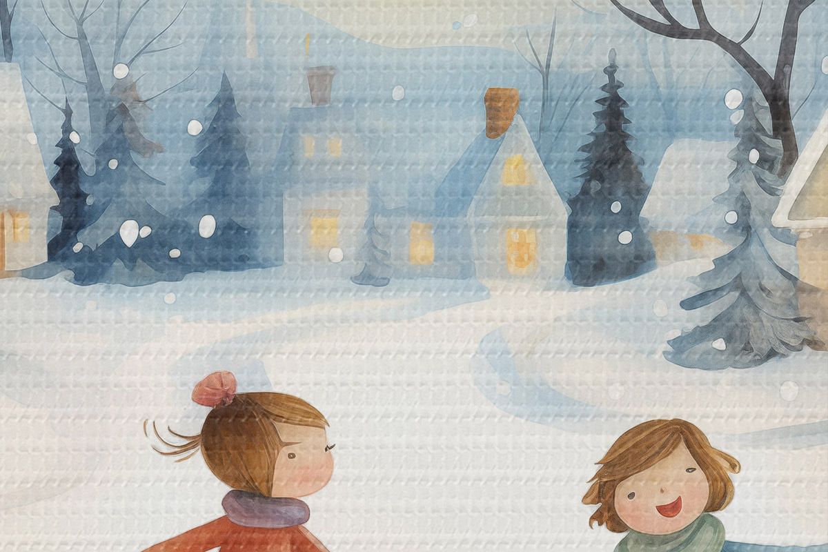Image Filles dans le village d'hiver, flocons de neige, aquarelle, maisons, forêt Nr r41385