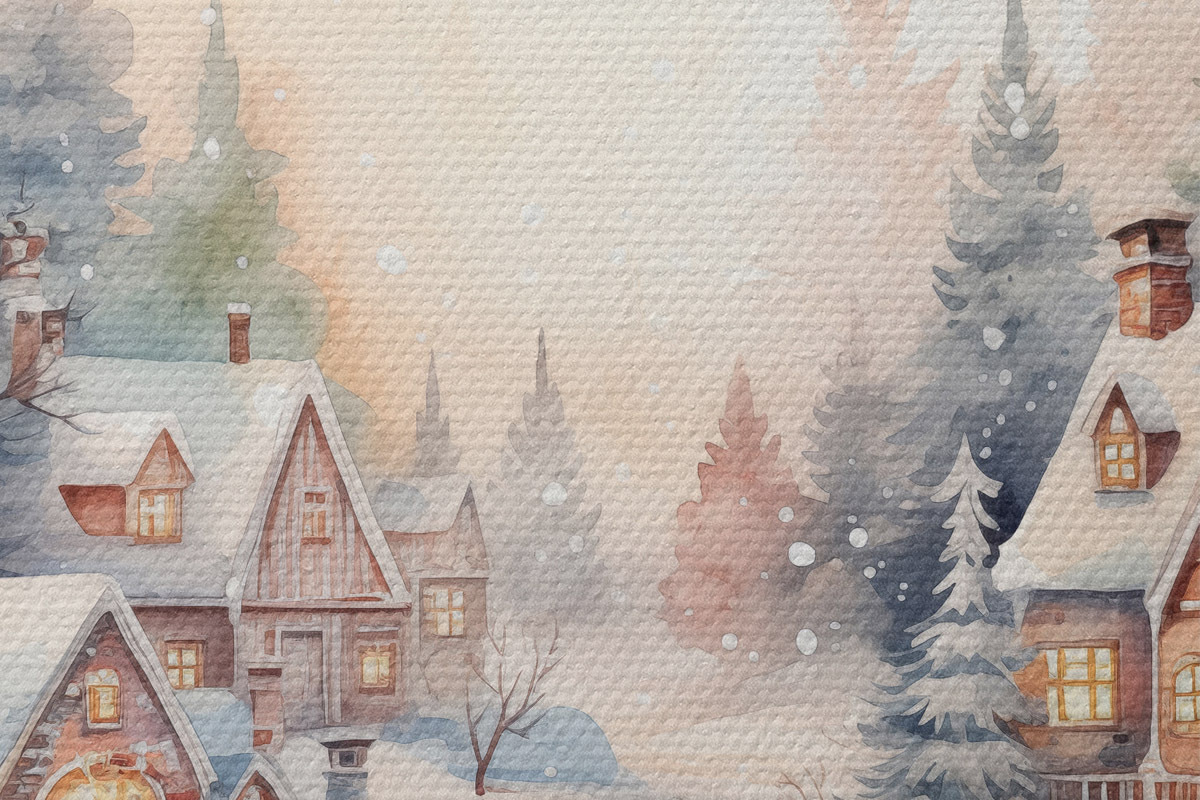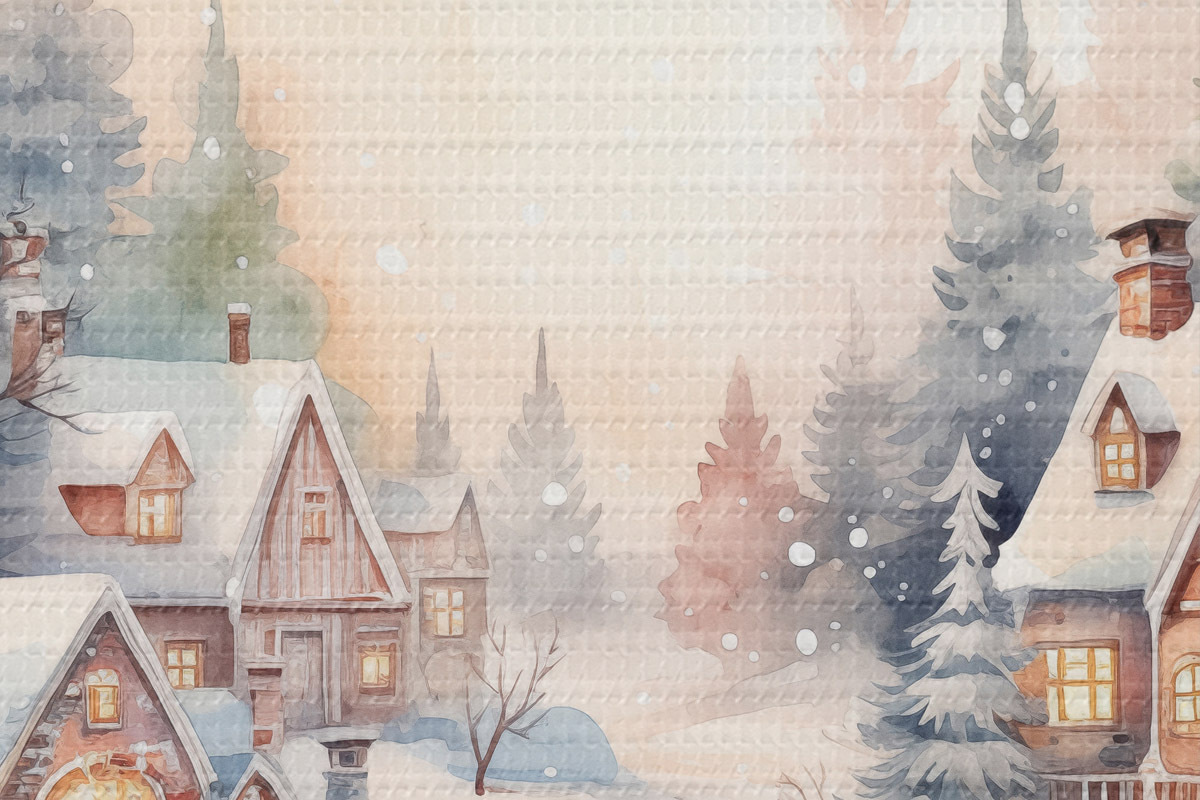Image Paysage d'hiver, forêt de pins, belles maisons, aquarelle, susnet Nr r41390