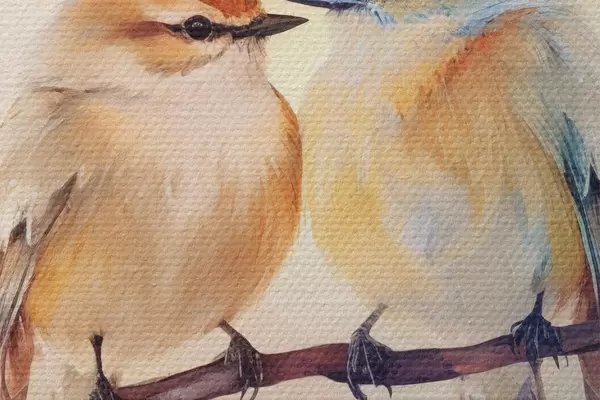 Image Un couple d'oiseaux est assis sur une branche fleurie Nr r41476