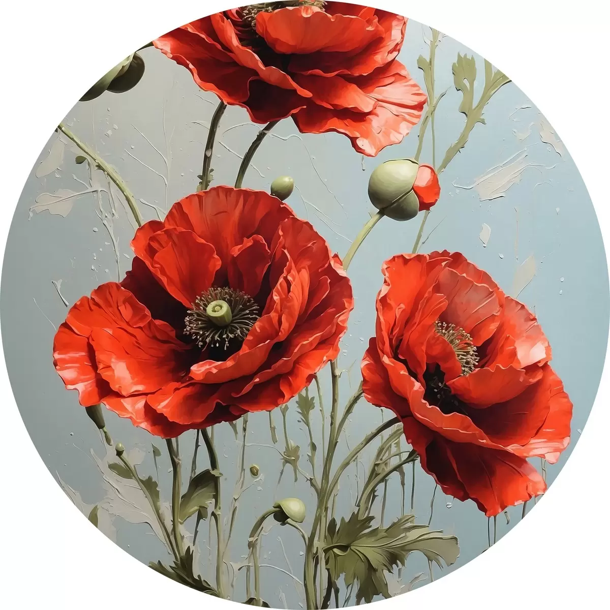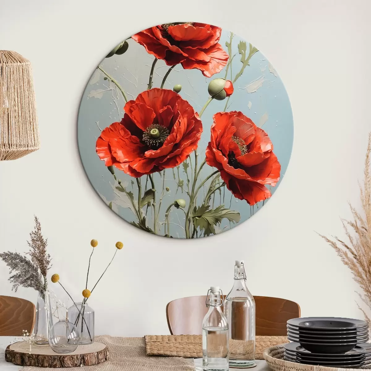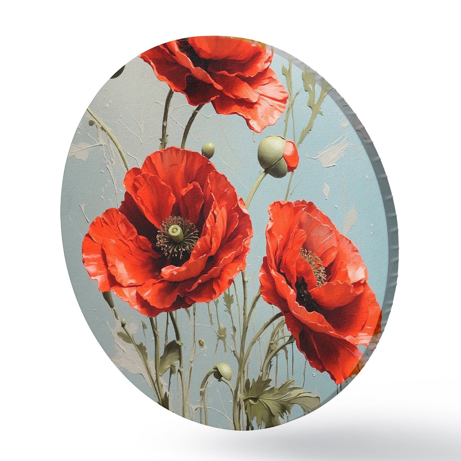 Tableaux ronds Coquelicots sur fond bleu r41773