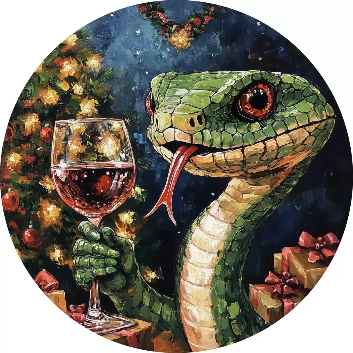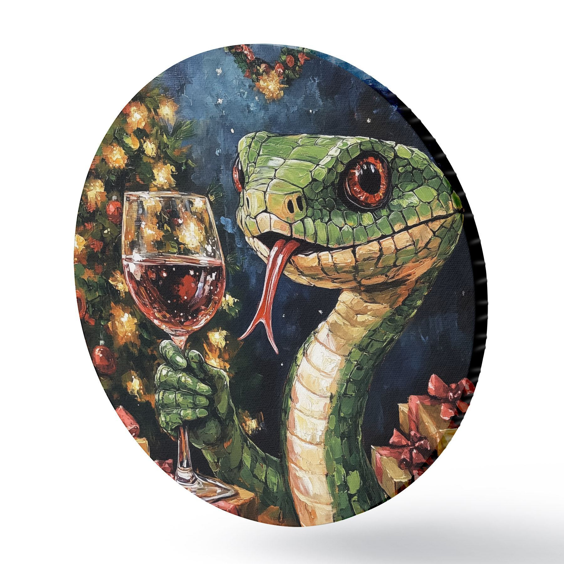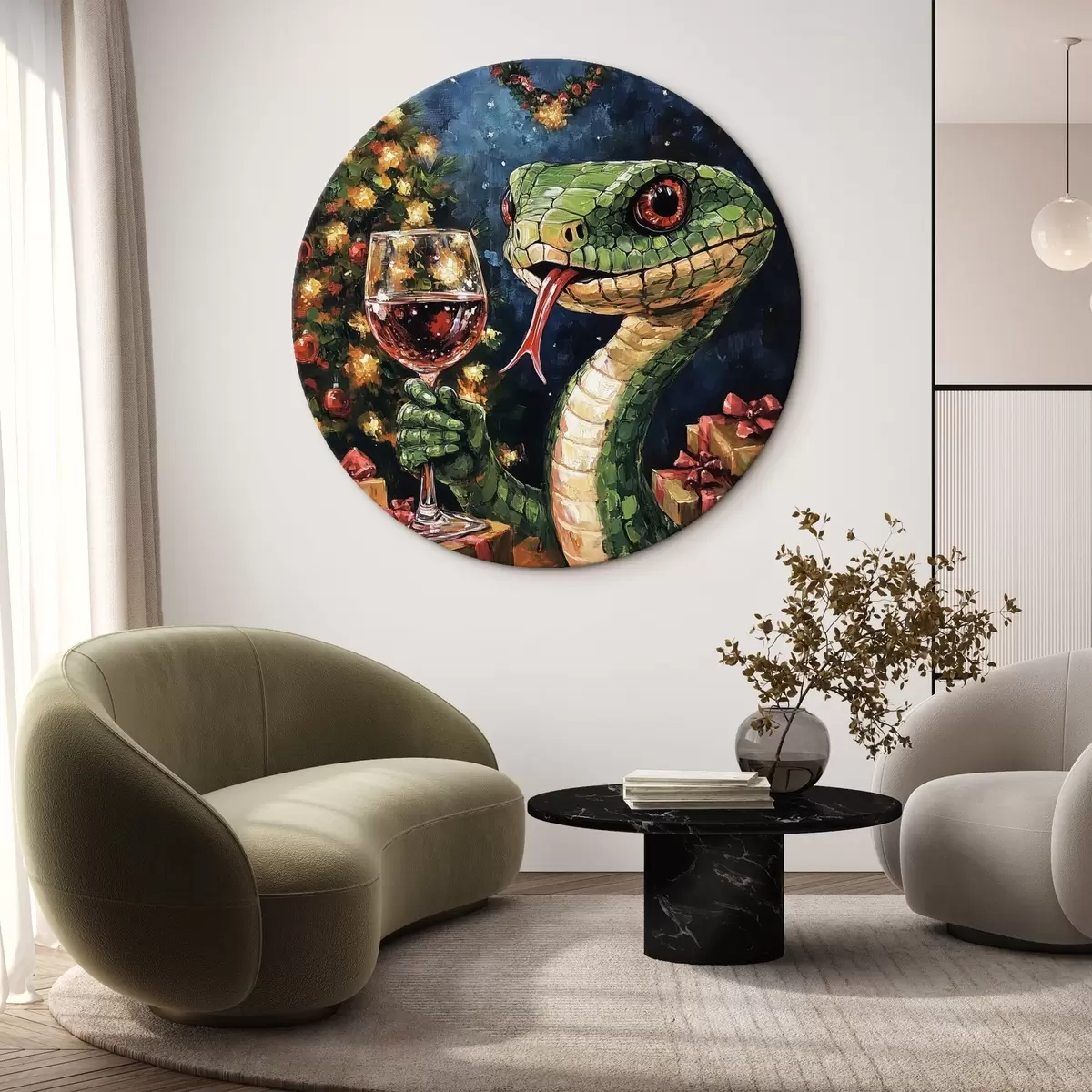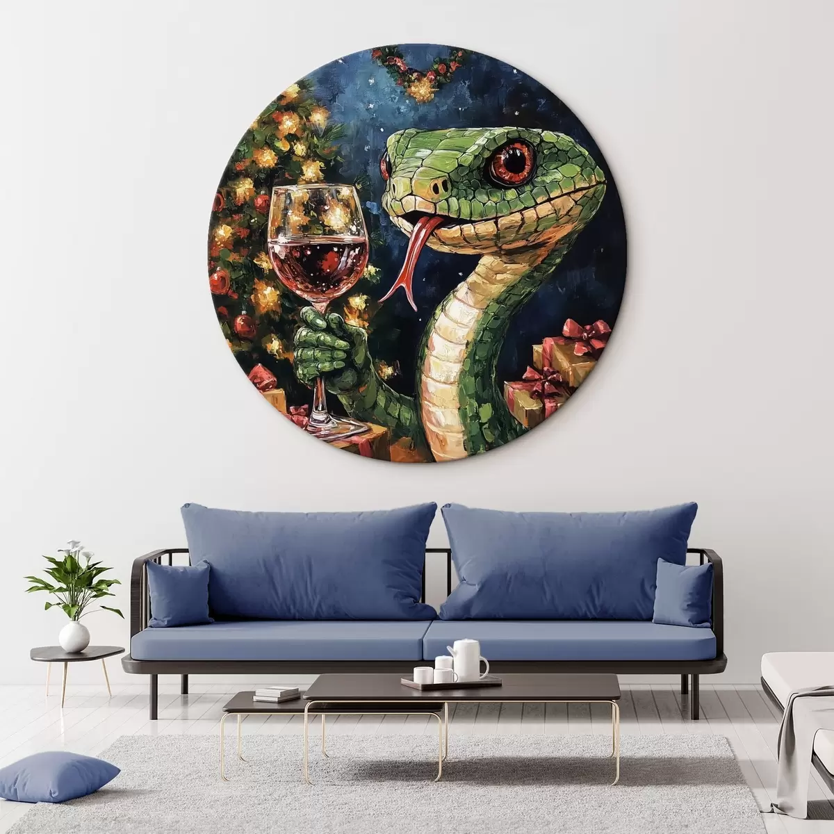 Tableaux ronds Un serpent fêtant la nouvelle année avec un verre de vin r42106