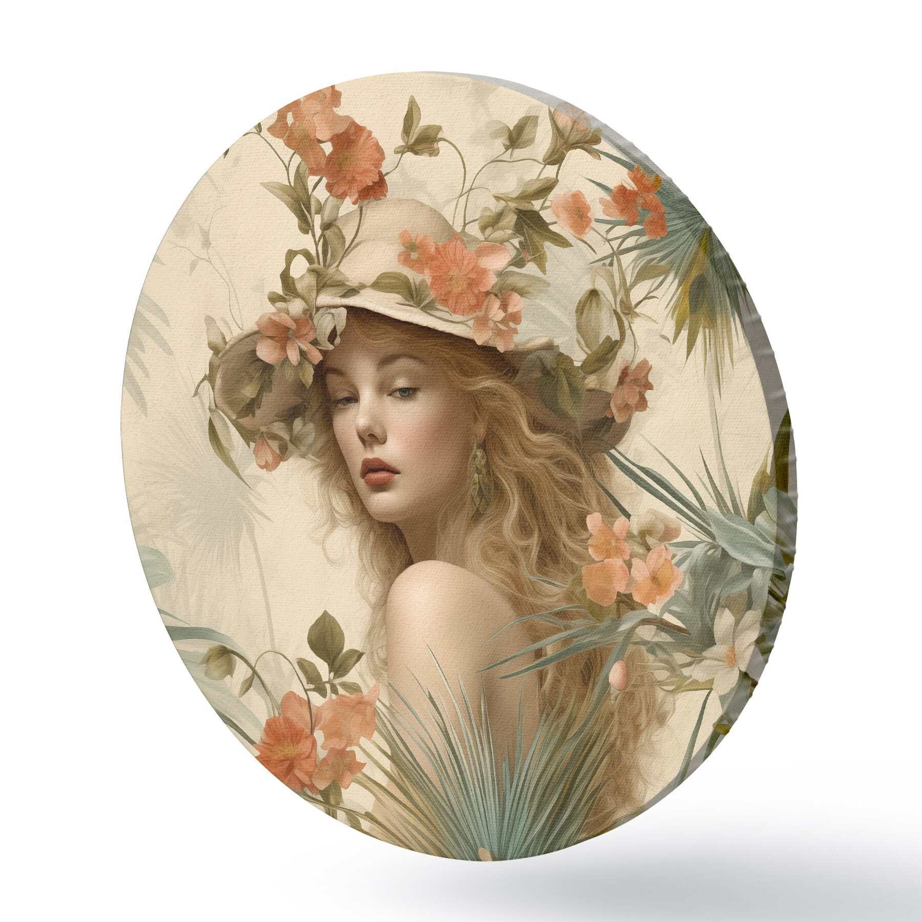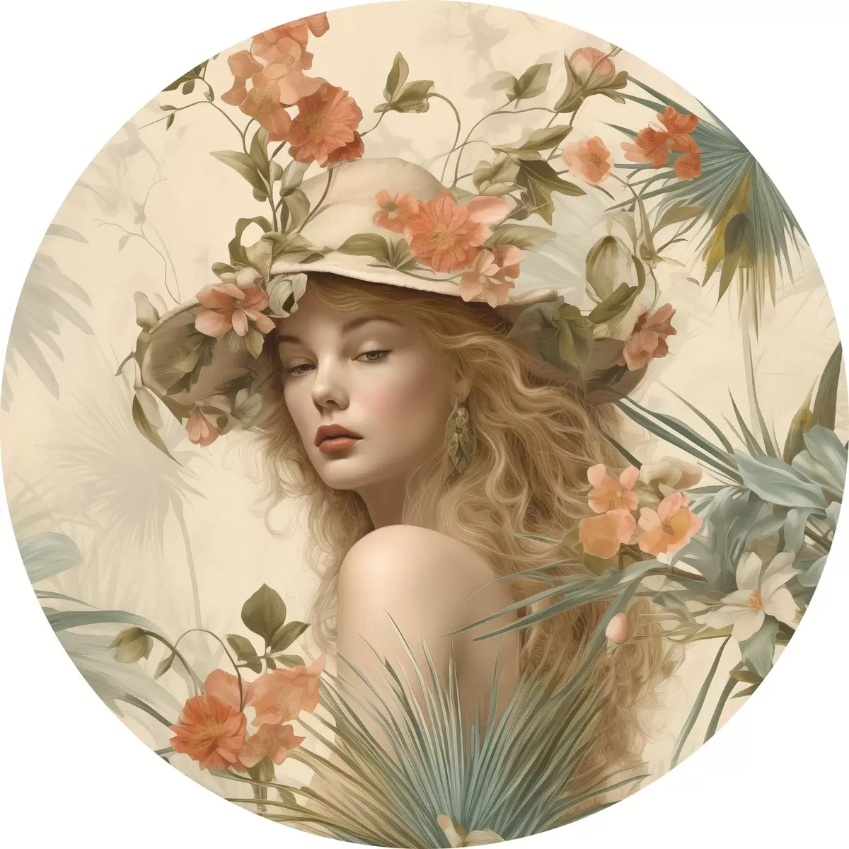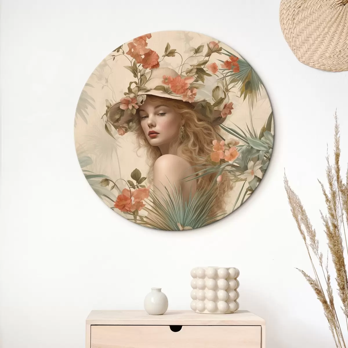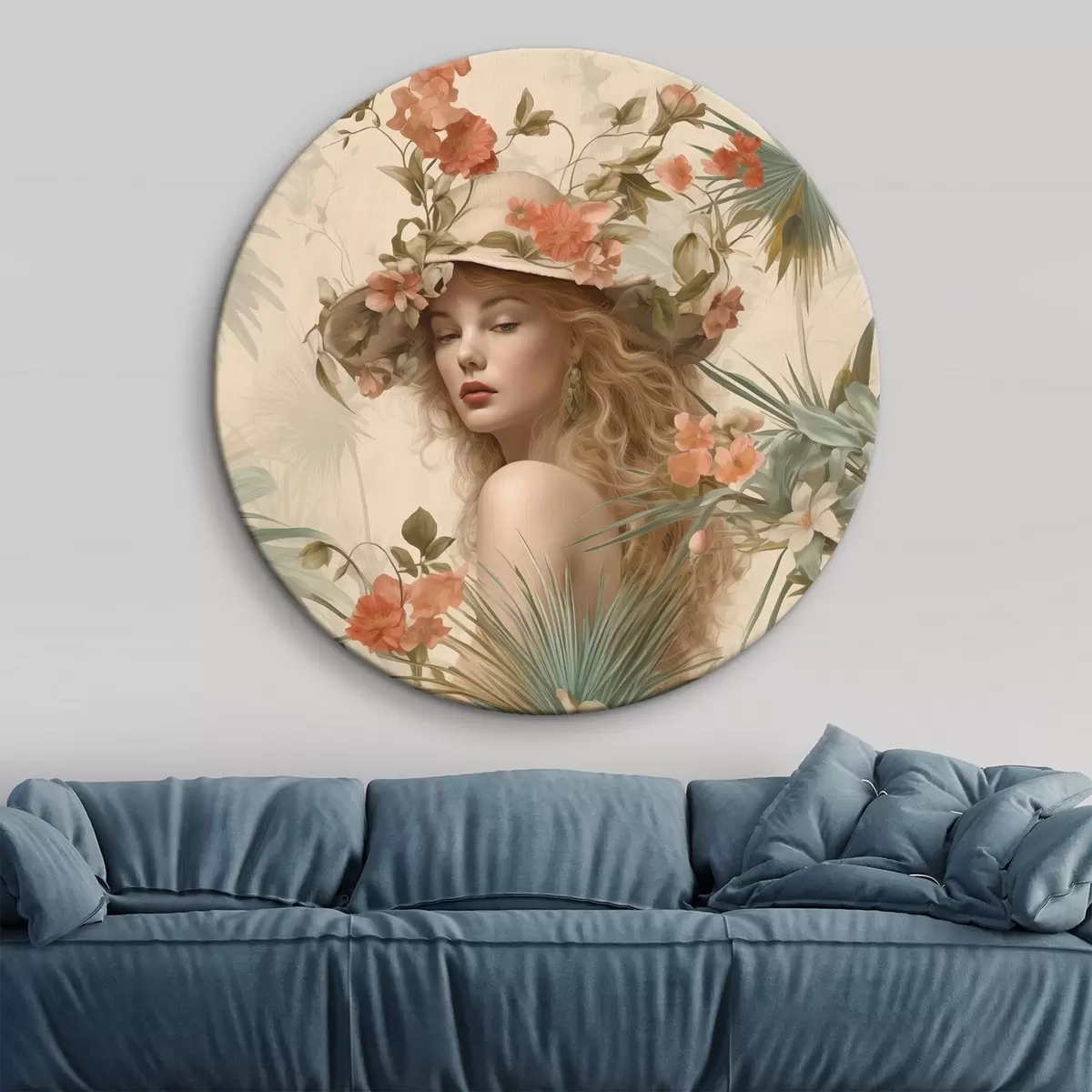 Tableaux ronds Fille avec un chapeau sous les tropiques, style vintage r42115