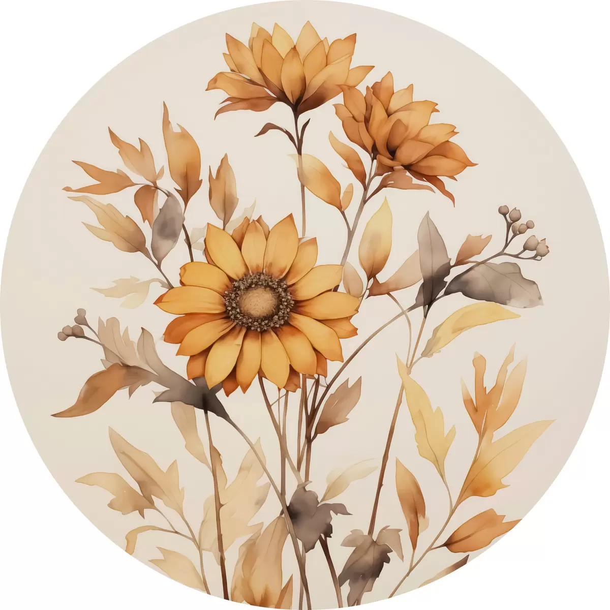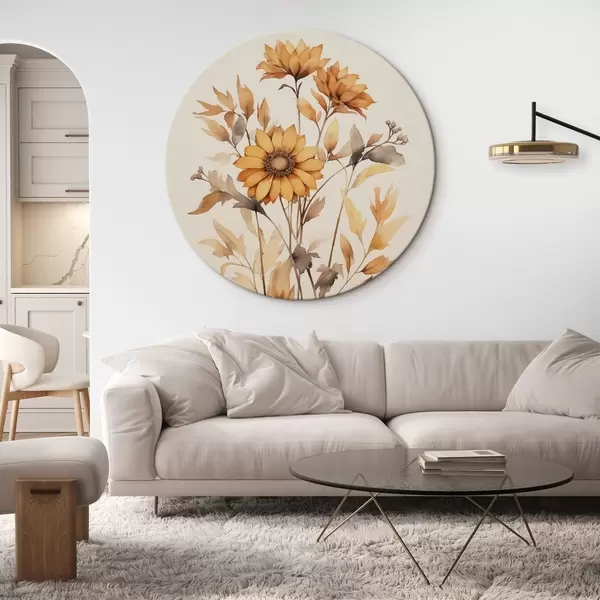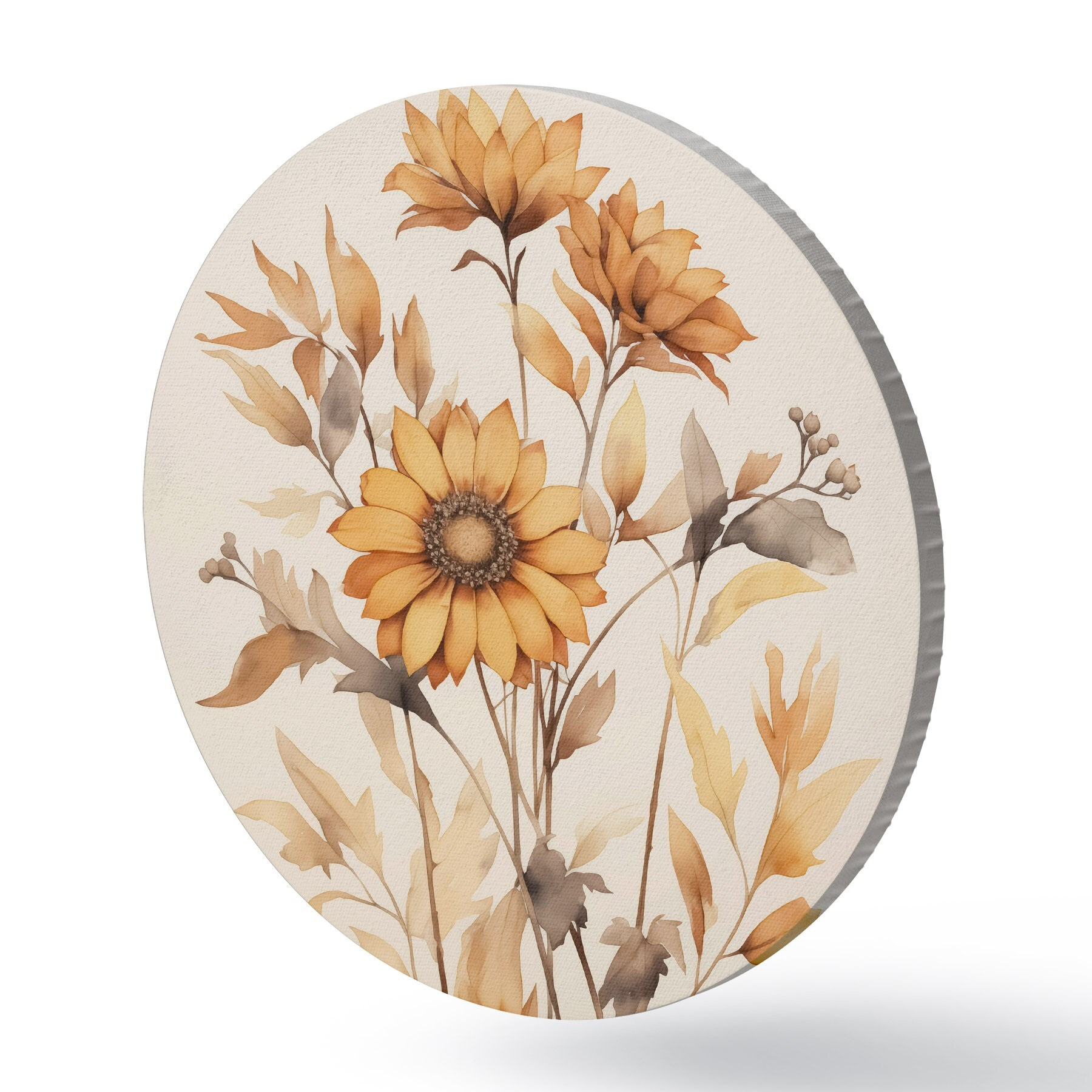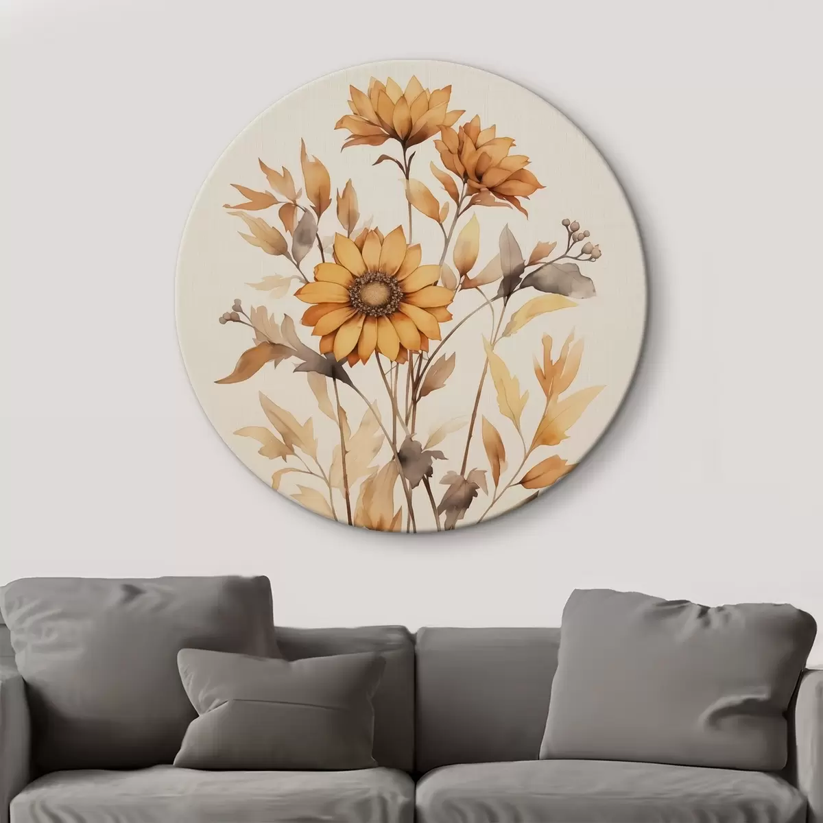 Tableaux ronds Branches avec fleurs jaunes imitation peinture aquarelle r42142