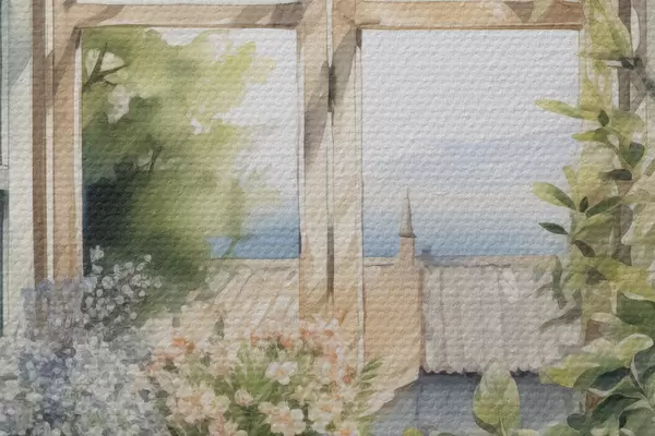 Image Végétation sur le rebord de la fenêtre imitation aquarelle Nr r42144