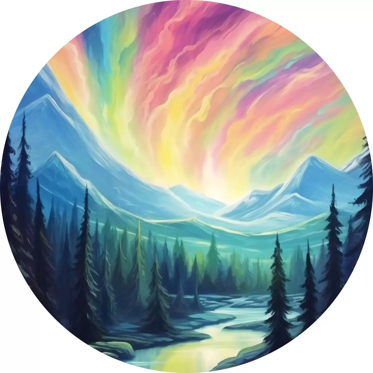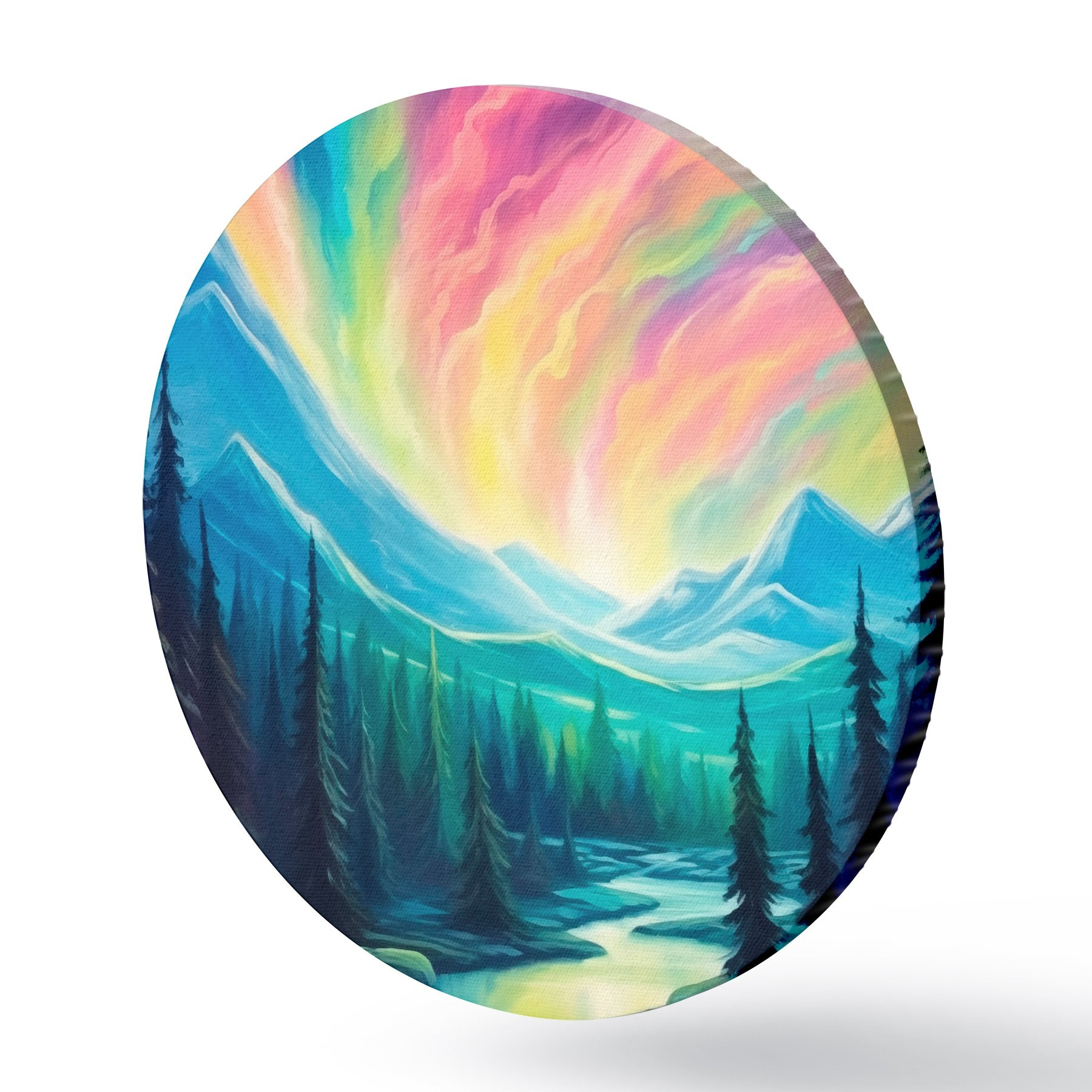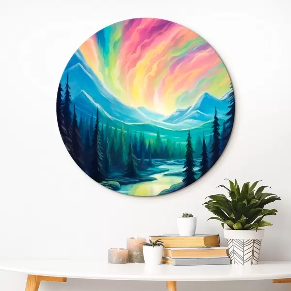 Tableaux ronds Aurore boréale sur un paysage de montagne r42150