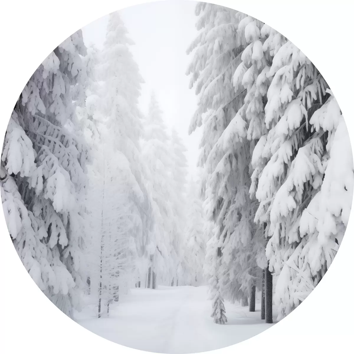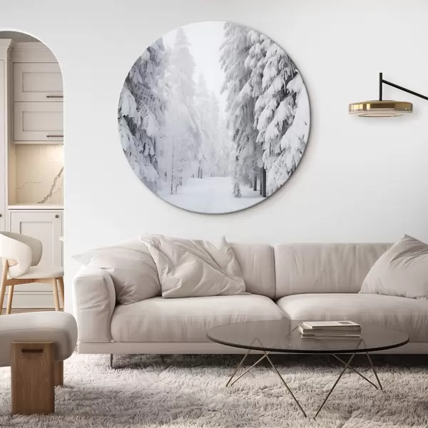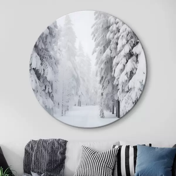 Tableaux ronds Forêt d'hiver dans la neige r42153