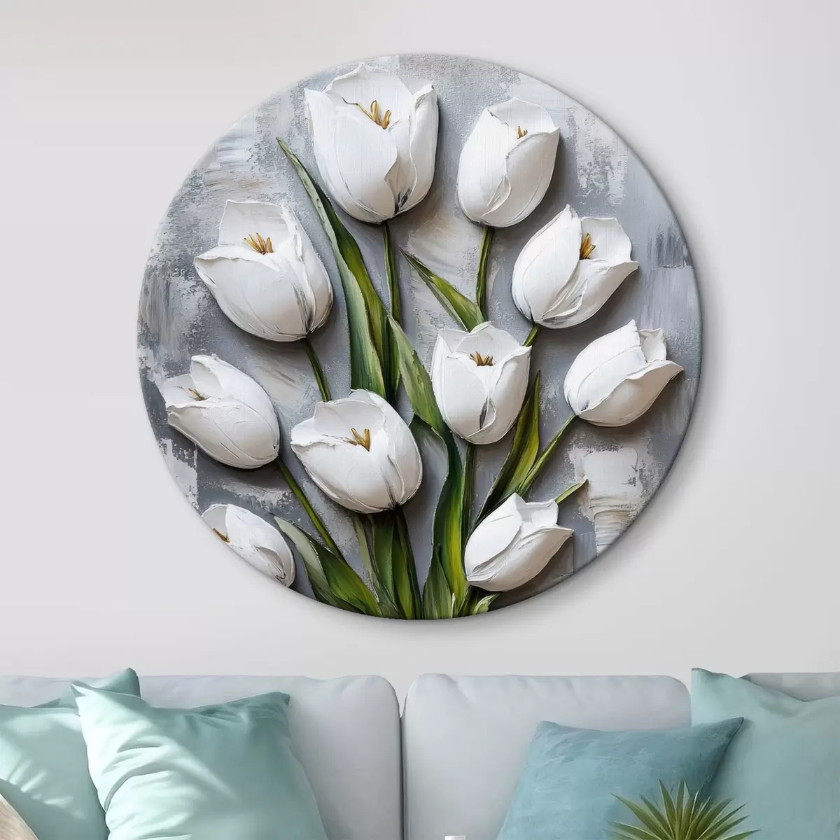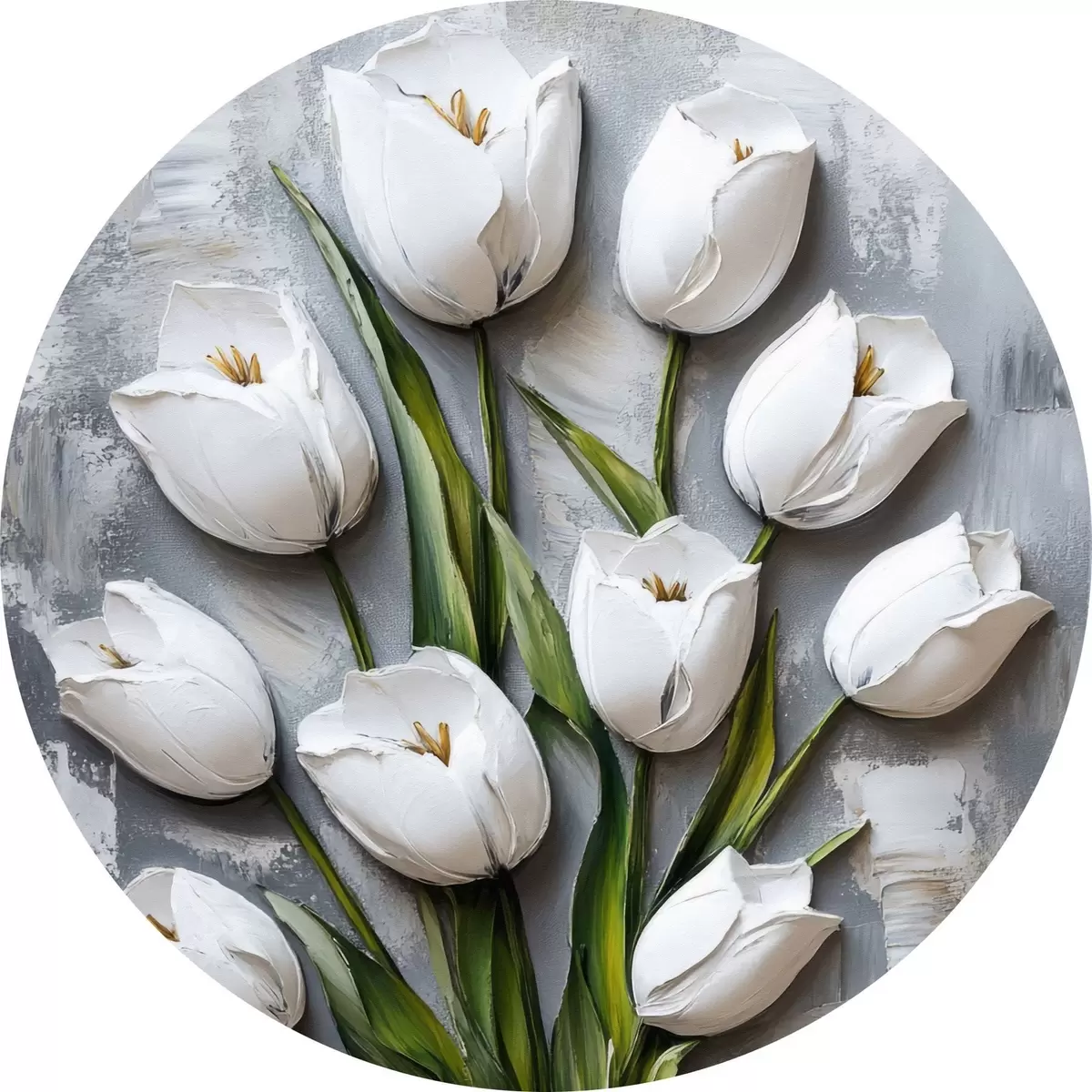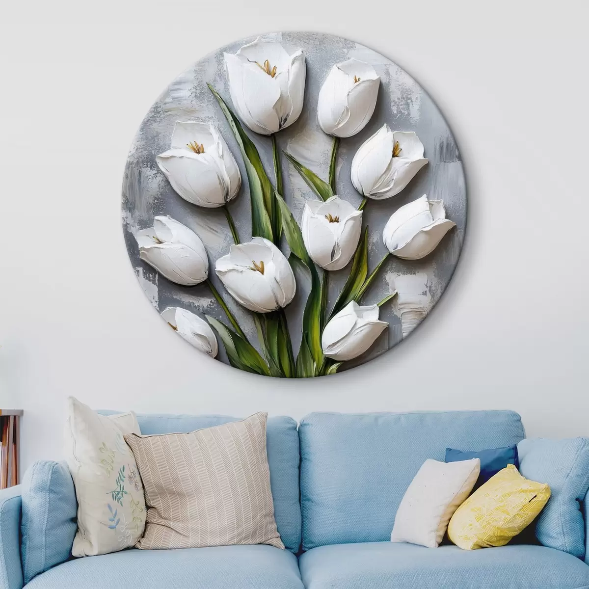 Tableaux ronds Fleurs, bouquet de tulipes, imitation modelage r42176