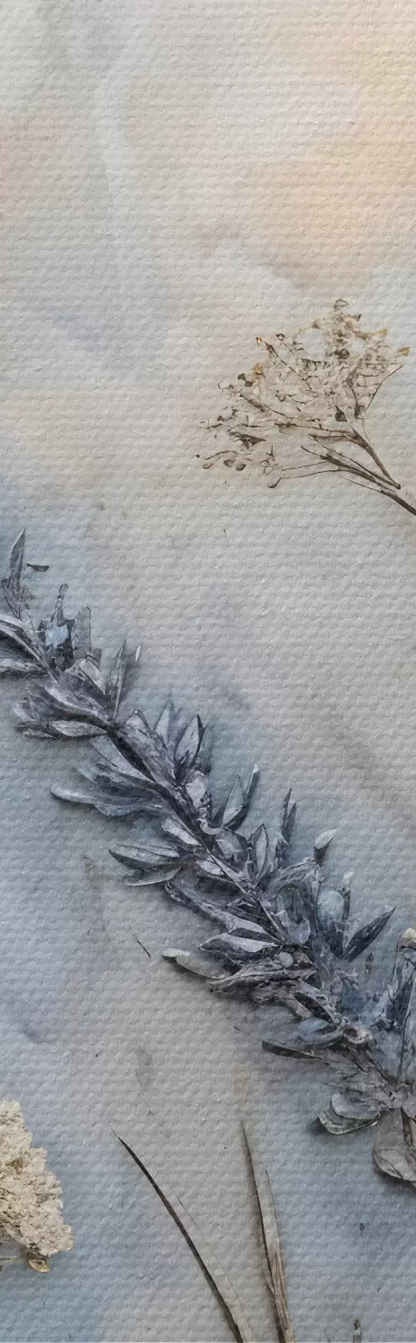 Image Un champ de fleurs sauvages et de plantes variées dans des tons de bleu, de blanc et de beige sur un fond doux et brumeux Nr r42214