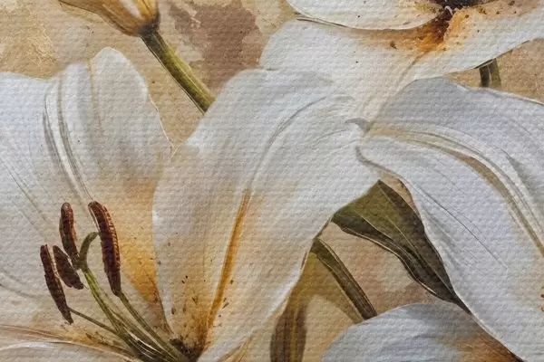 Image Lys blancs avec centre jaune sur fond beige texturé Nr r42216