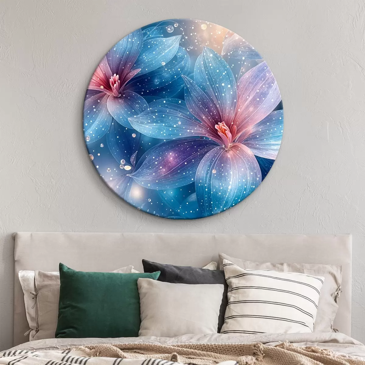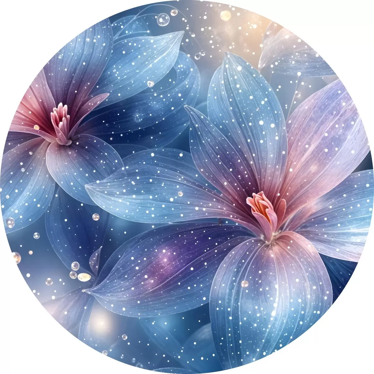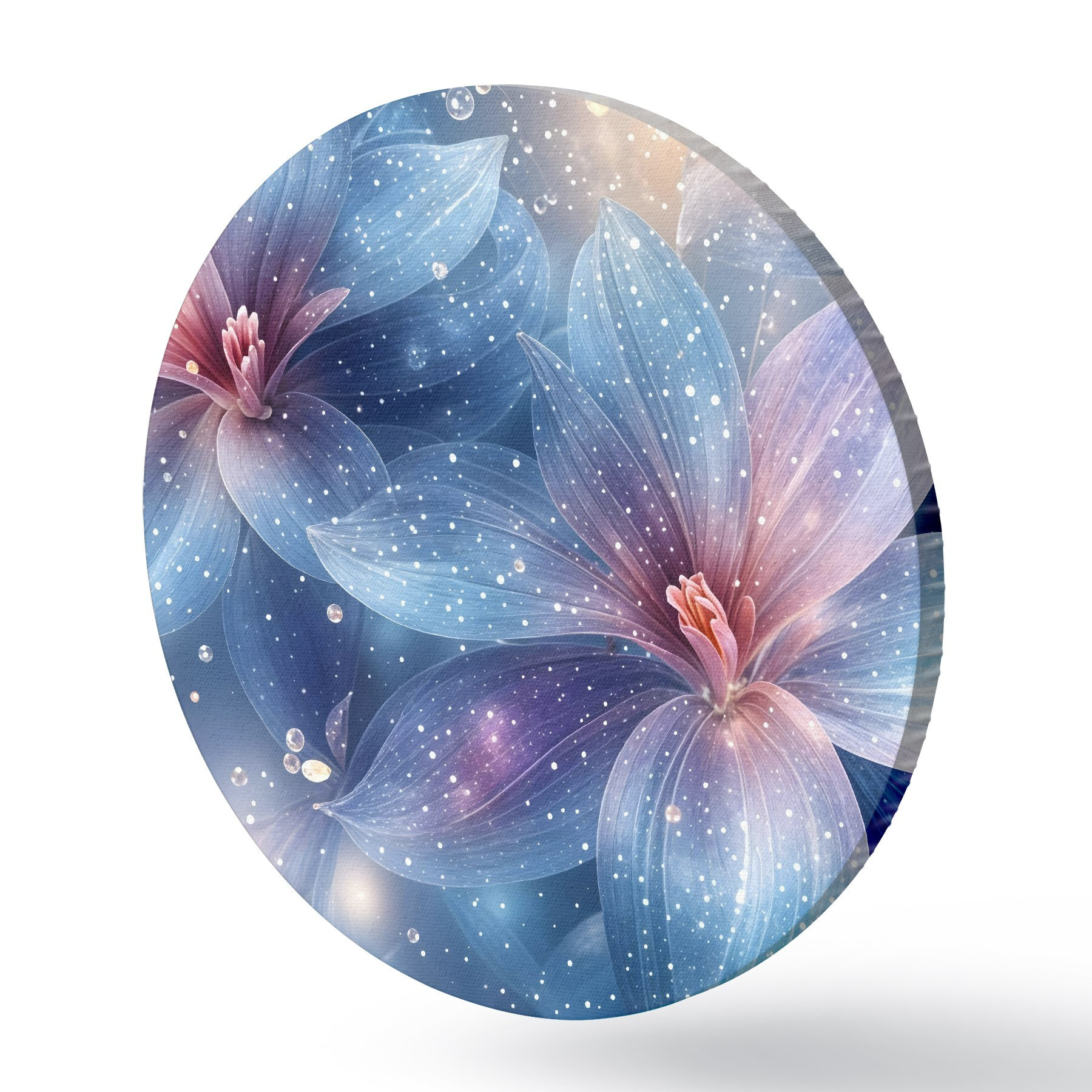 Tableaux ronds Fleurs vibrantes et éthérées avec des pétales pastel doux sur un fond étoilé de rêve r42231