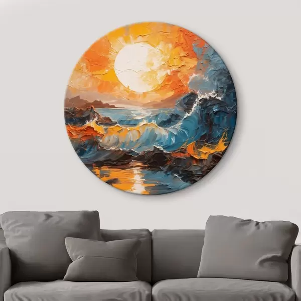 Tableaux ronds Mer agitée et soleil en peinture à l'huile r42257