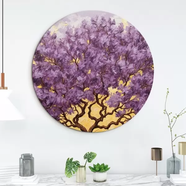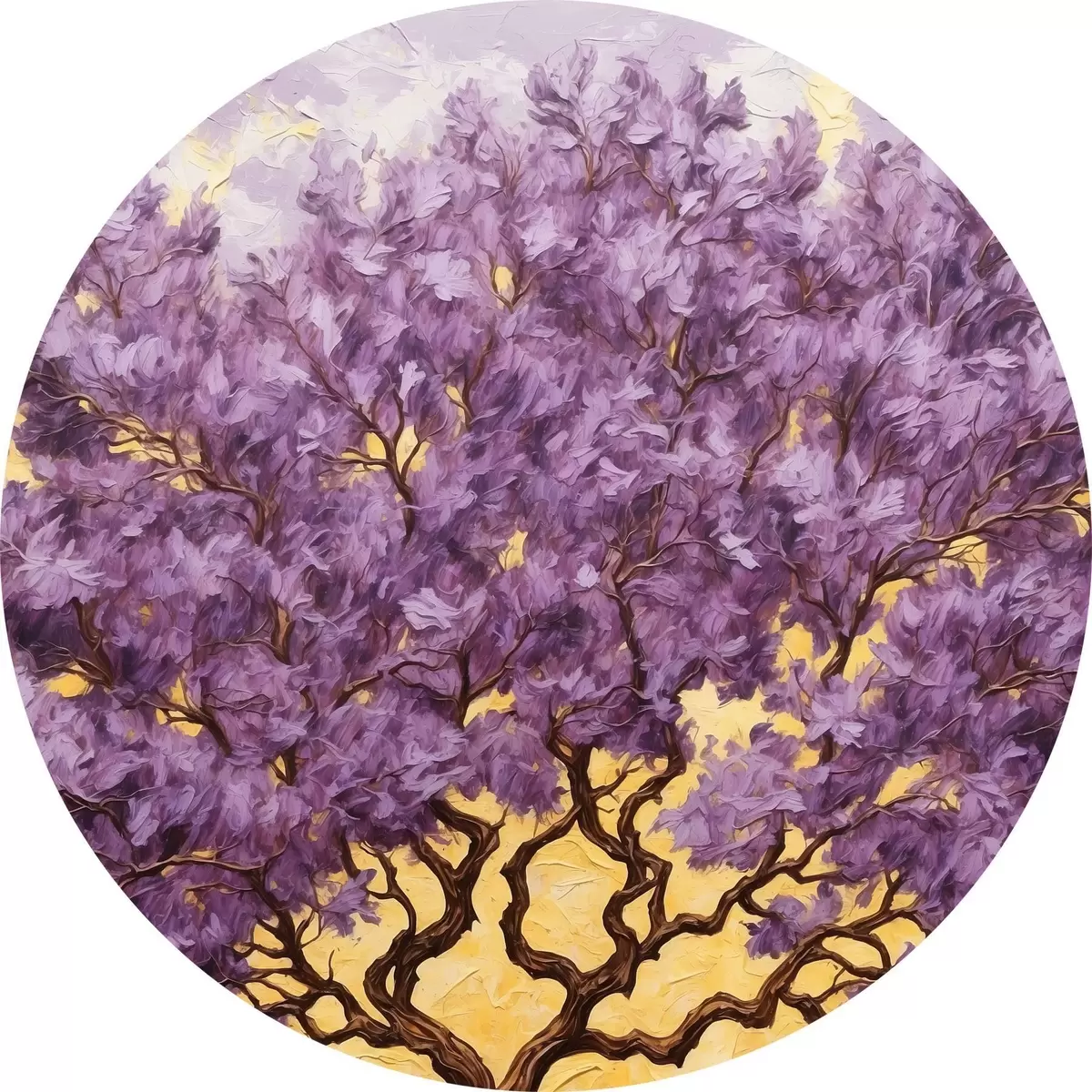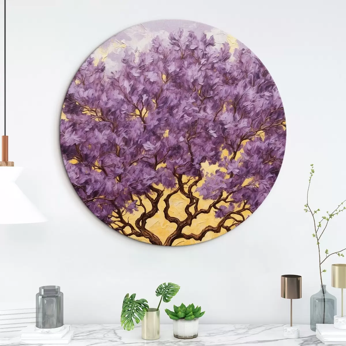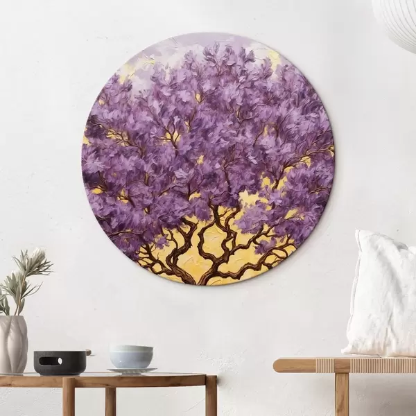 Tableaux ronds Arbre violet sur fond jaune-phyolotol r42272