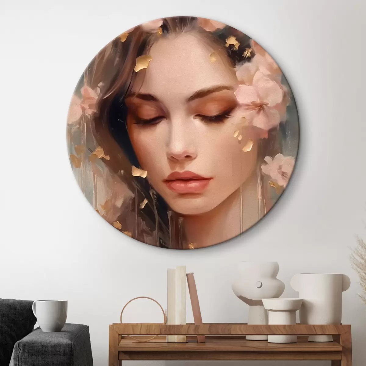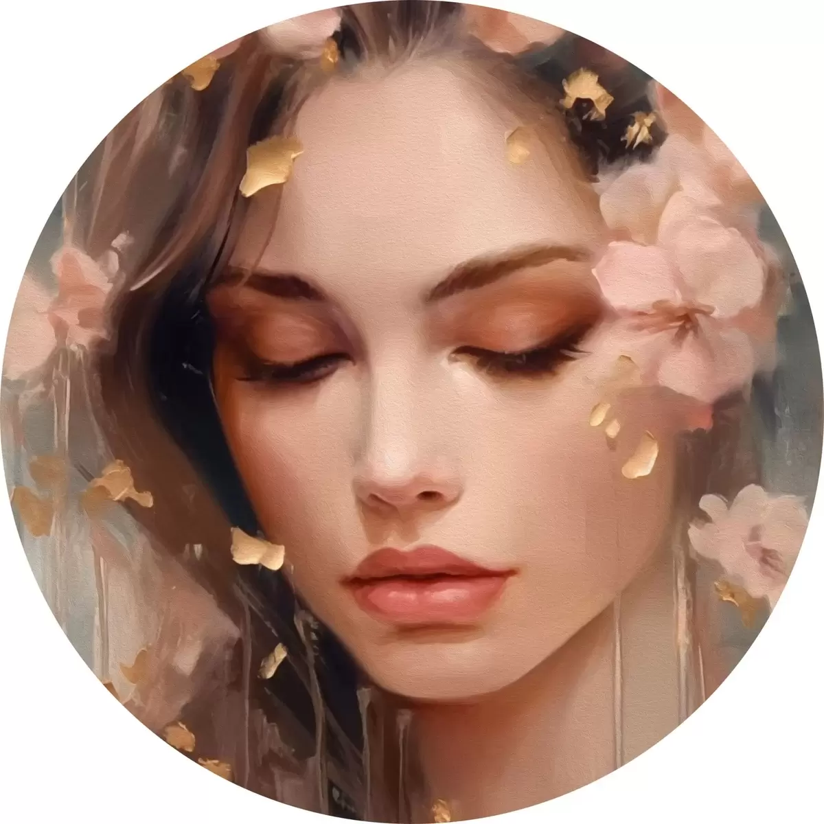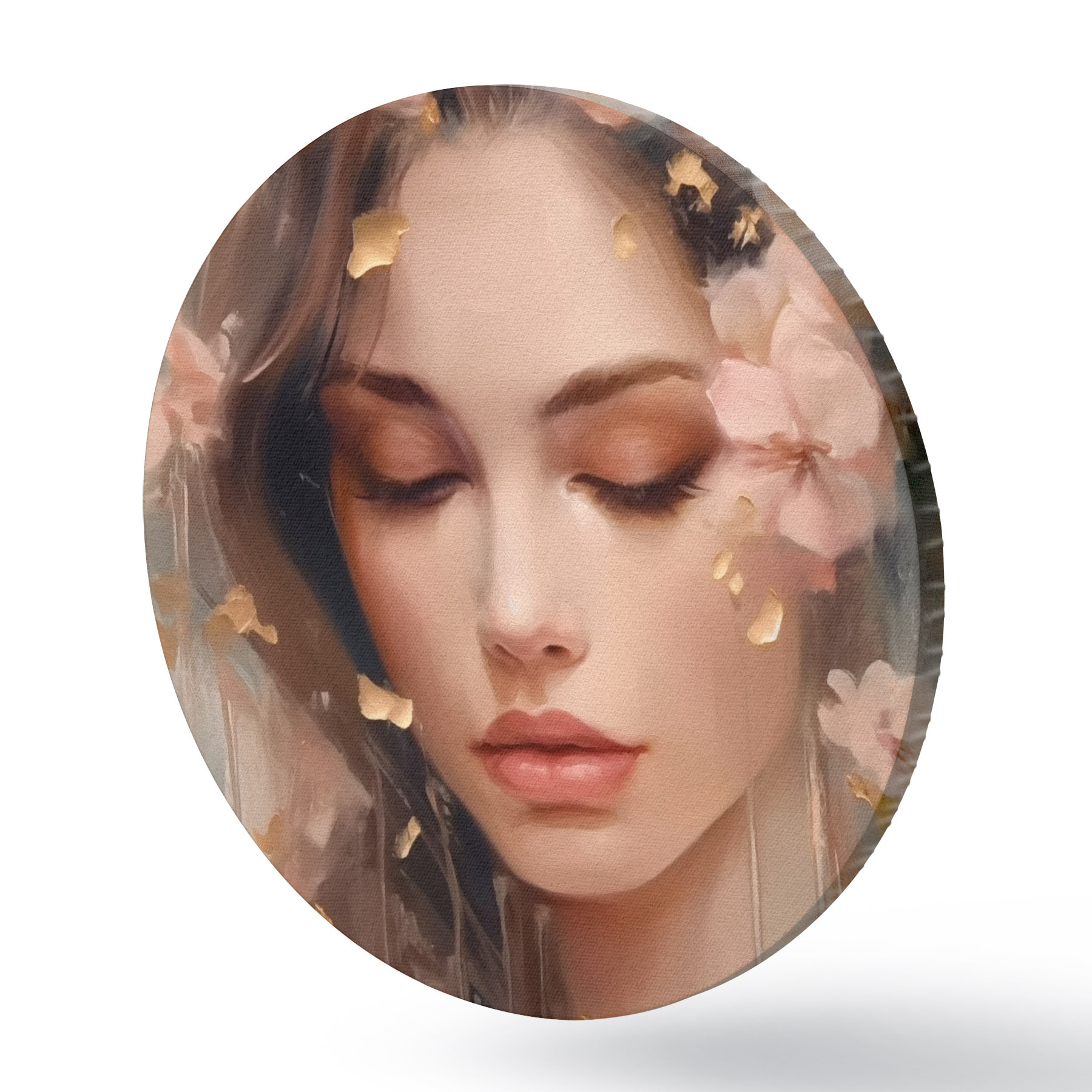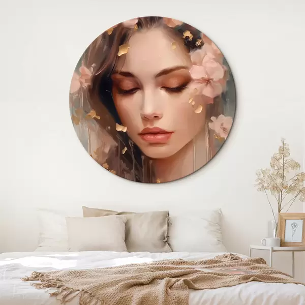 Tableaux ronds Visage de fille et fleurs r42300