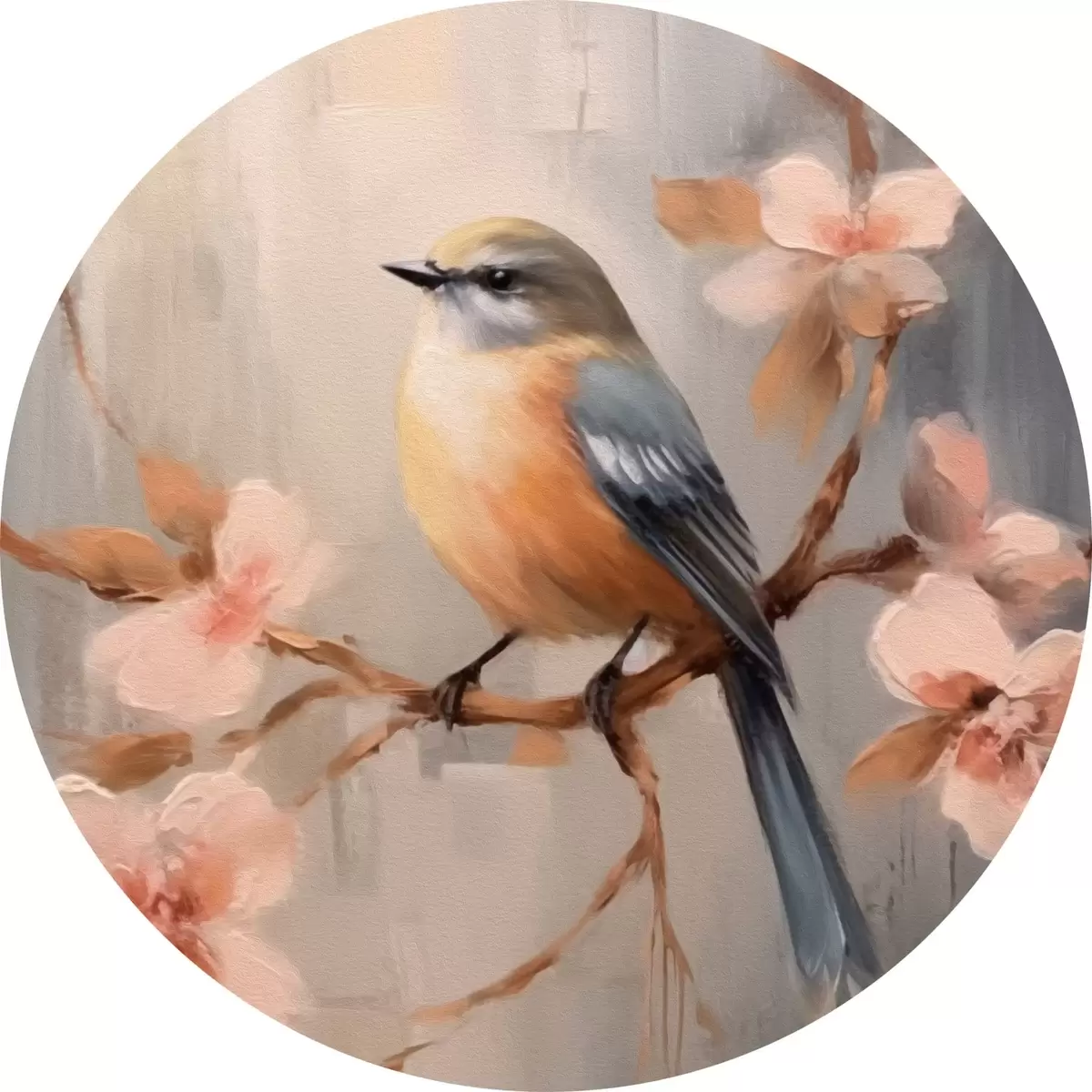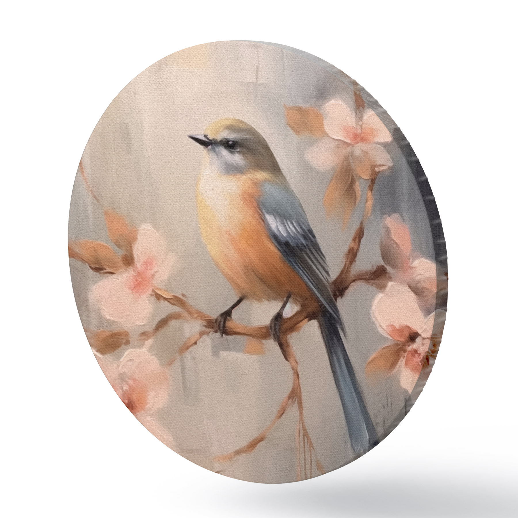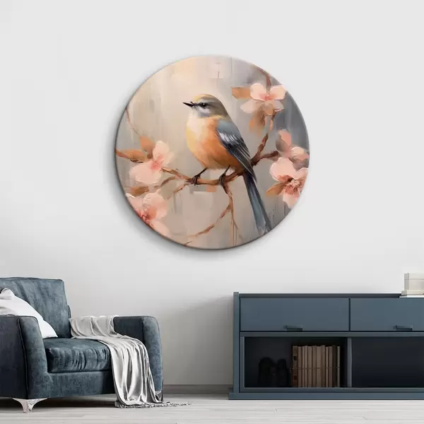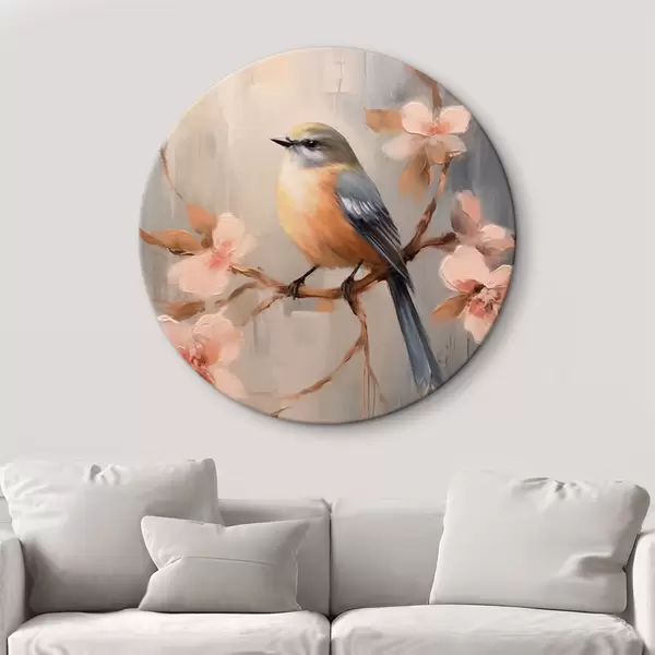 Tableaux ronds Oiseau sur une branche et fleurs roses r42302
