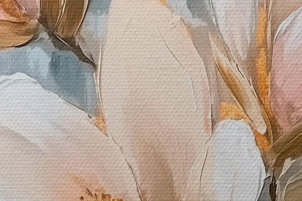 Trois types de matériaux peuvent être commandés : Economic Canvas - matériau dense et durable pour l'impression numérique, identique à la toile de peintre, surface imperméable, reproduction réaliste des détails, matériau à grain moyen. Premium Canvas - la texture ressemble à celle d'une toile de peintre (petits fils entrelacés). Reproduction douce et détaillée de l'image sur une surface mate. Eco-Premium - tissu 100 % coton de haute qualité. Grâce aux fibres naturelles de coton, le matériau est durable et résistant à l'usure. Excellente reproduction des couleurs et des détails.