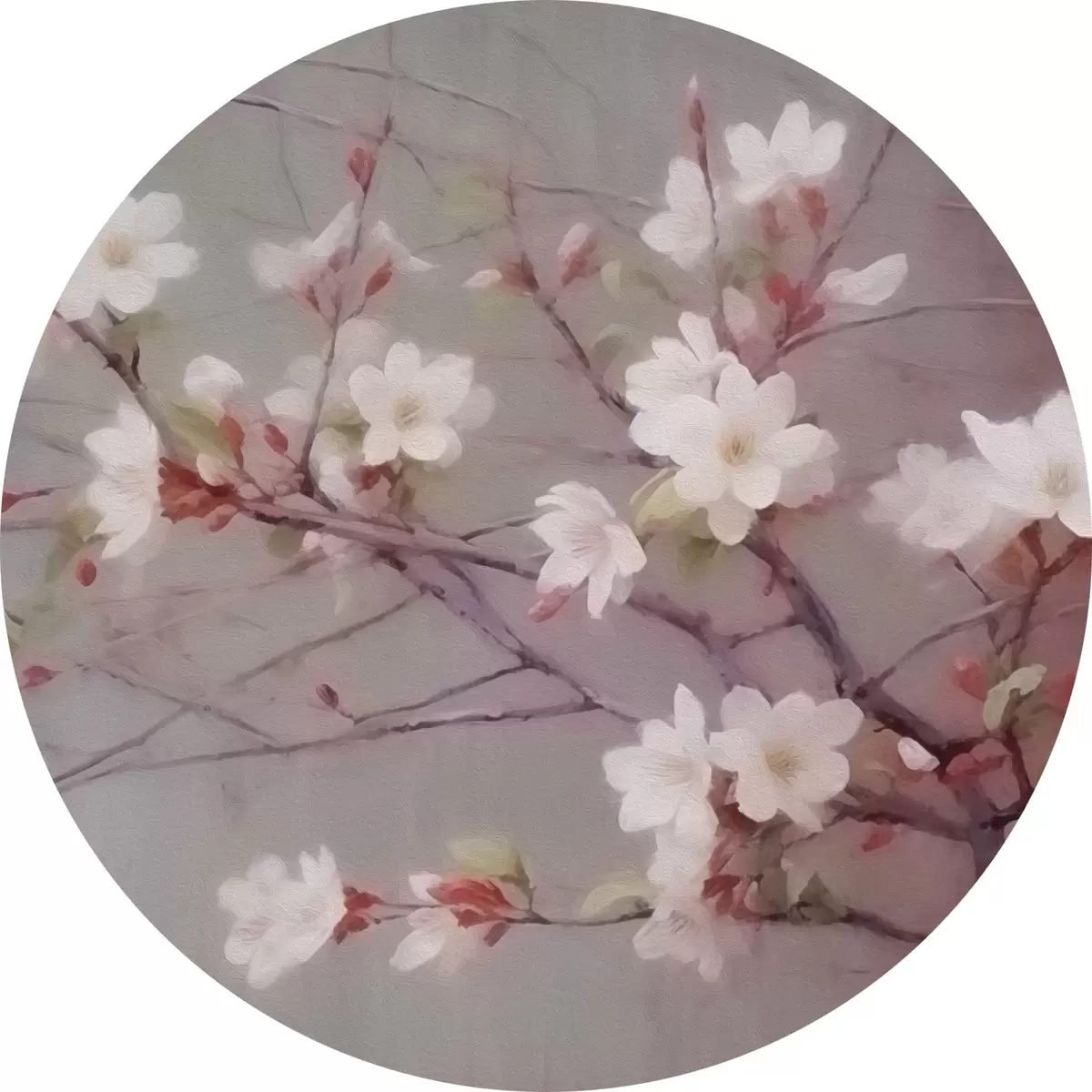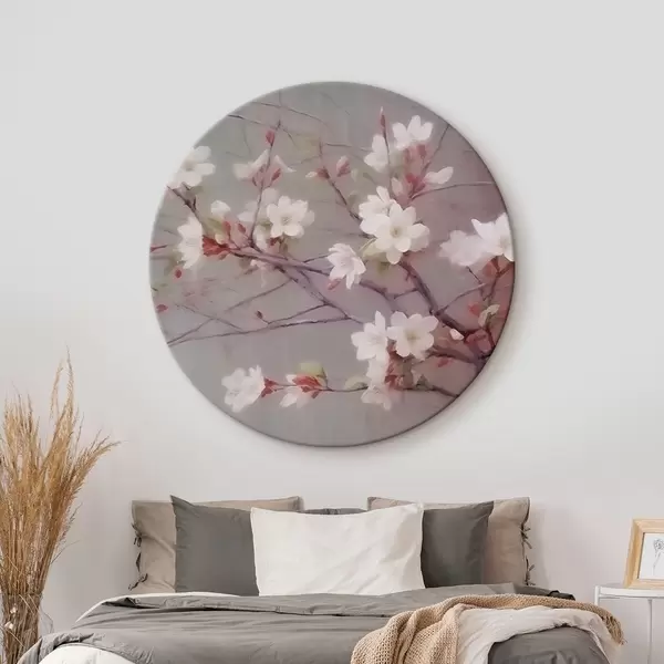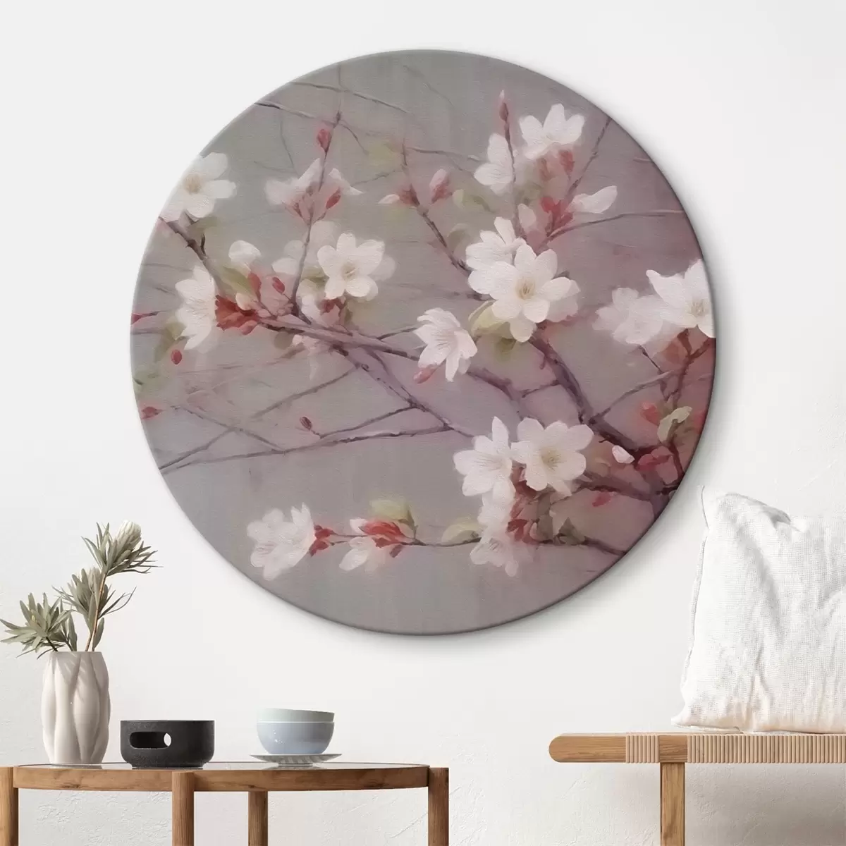 Tableaux ronds Une branche avec des fleurs blanches r42339