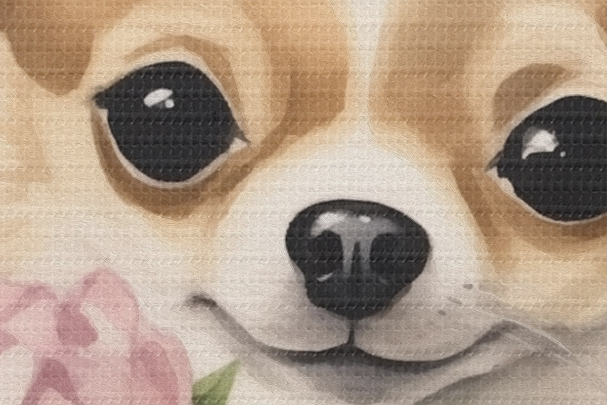 Trois types de matériaux peuvent être commandés : Economic Canvas - matériau dense et durable pour l'impression numérique, identique à la toile de peintre, surface imperméable, reproduction réaliste des détails, matériau à grain moyen. Premium Canvas - la texture ressemble à celle d'une toile de peintre (petits fils entrelacés). Reproduction douce et détaillée de l'image sur une surface mate. Eco-Premium - tissu 100 % coton de haute qualité. Grâce aux fibres naturelles de coton, le matériau est durable et résistant à l'usure. Excellente reproduction des couleurs et des détails.