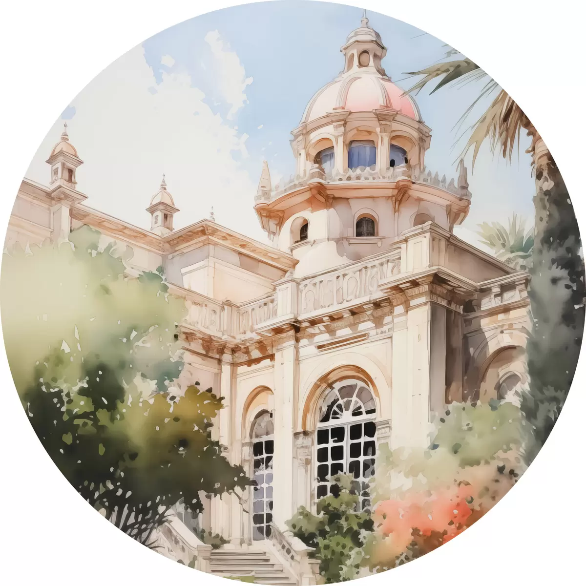 Tableaux ronds Jardin près de la maison imitation aquarelle r42362