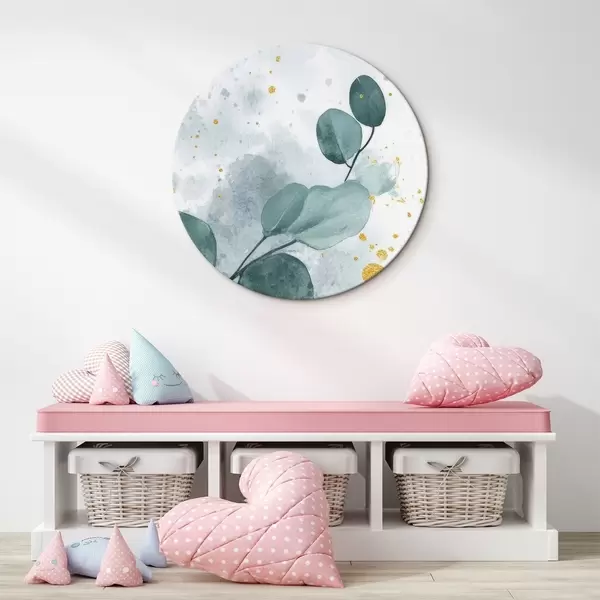 Tableaux ronds Branche d'eucalyptus sur un fond aquarelle délicat r42389