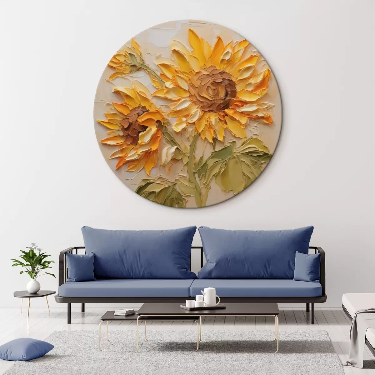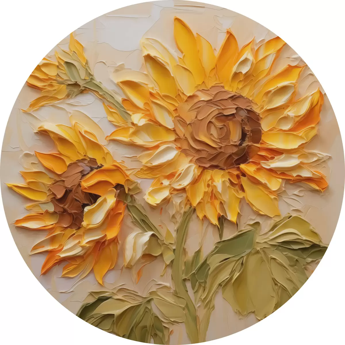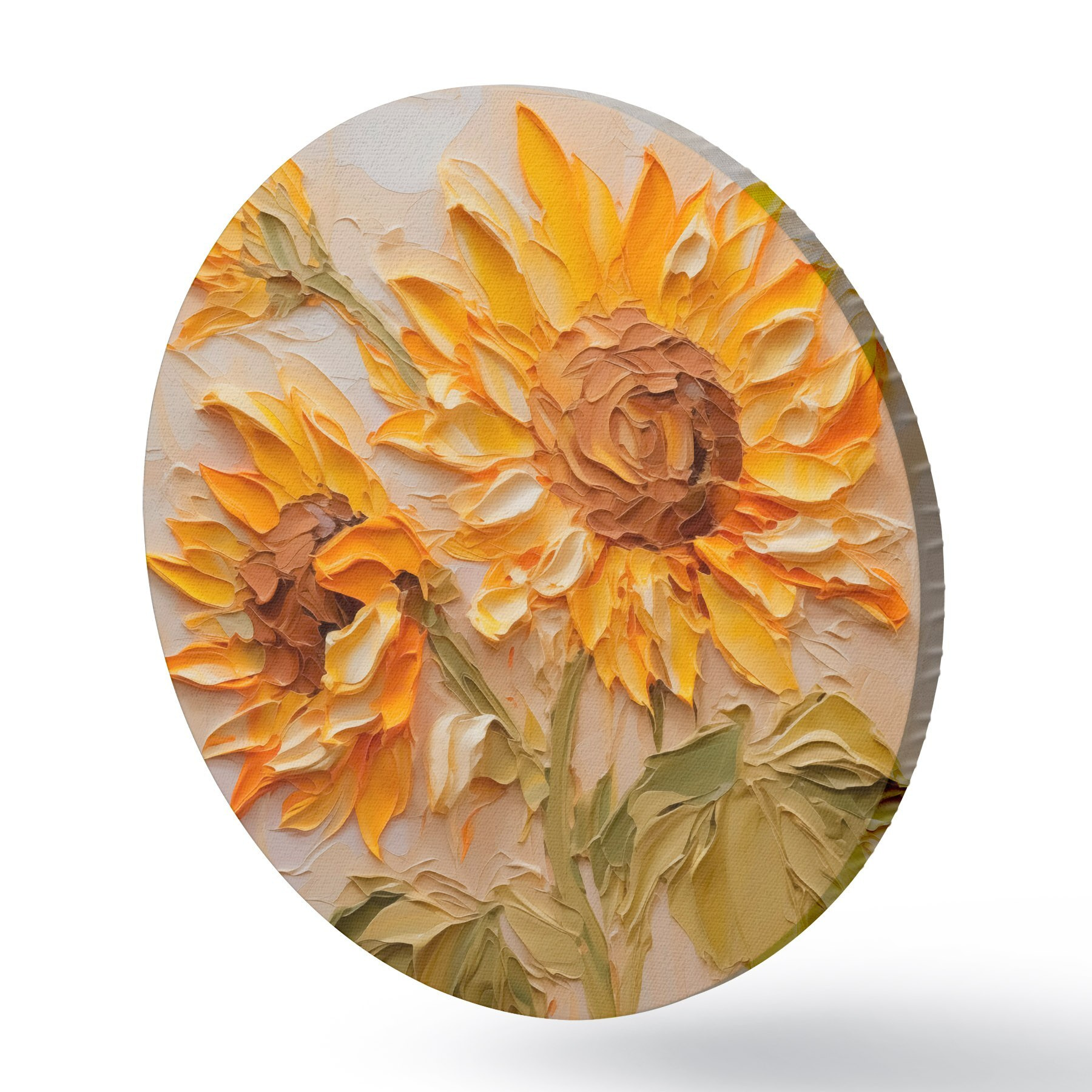 Tableaux ronds Tournesols imitation coups de pinceau r42411