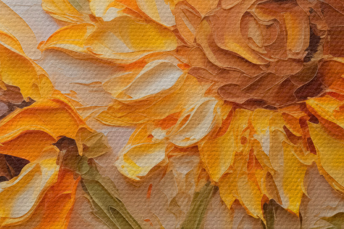 Trois types de matériaux peuvent être commandés : Economic Canvas - matériau dense et durable pour l'impression numérique, identique à la toile de peintre, surface imperméable, reproduction réaliste des détails, matériau à grain moyen. Premium Canvas - la texture ressemble à celle d'une toile de peintre (petits fils entrelacés). Reproduction douce et détaillée de l'image sur une surface mate. Eco-Premium - tissu 100 % coton de haute qualité. Grâce aux fibres naturelles de coton, le matériau est durable et résistant à l'usure. Excellente reproduction des couleurs et des détails.