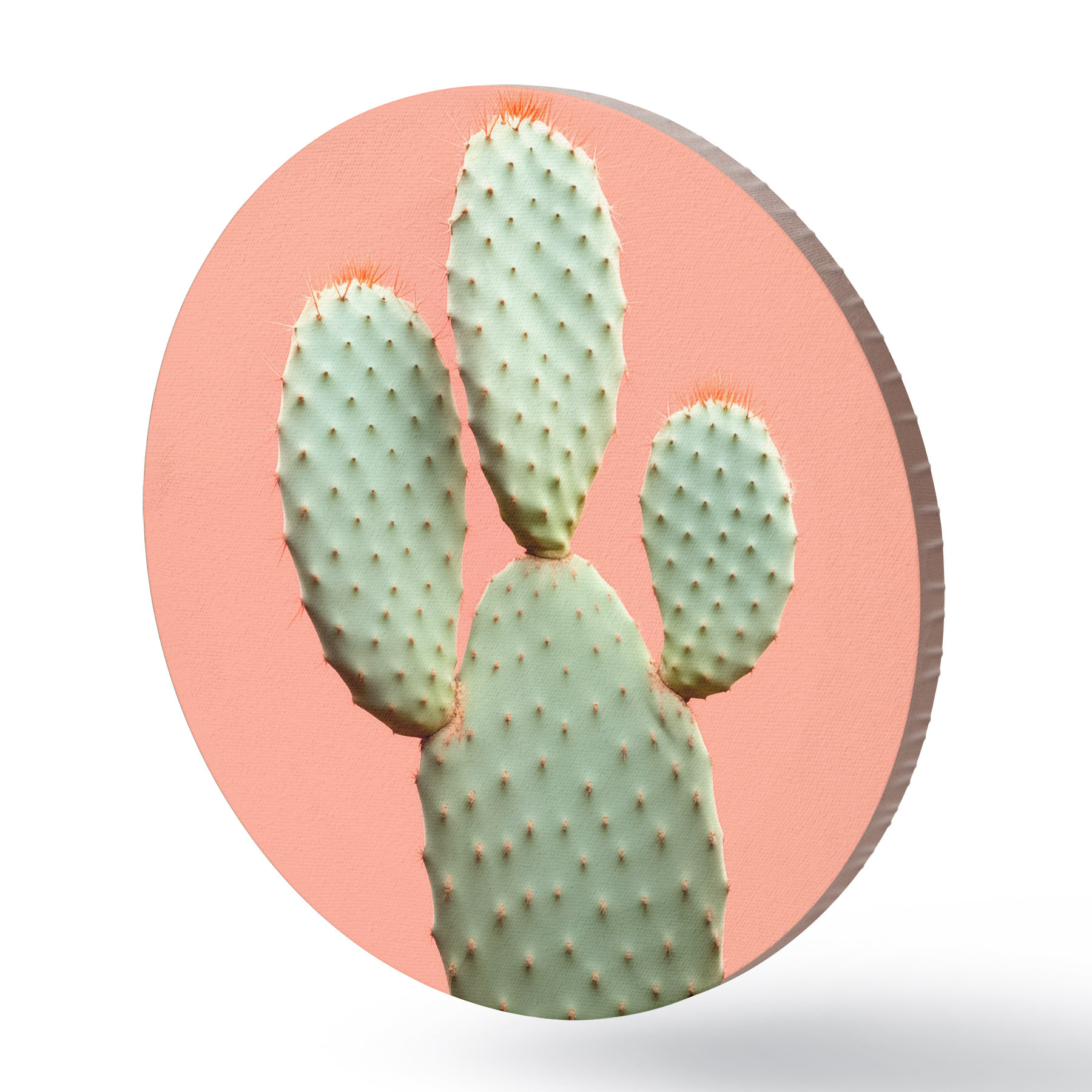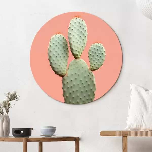 Tableaux ronds Cactus minimaliste sur fond rose r42412