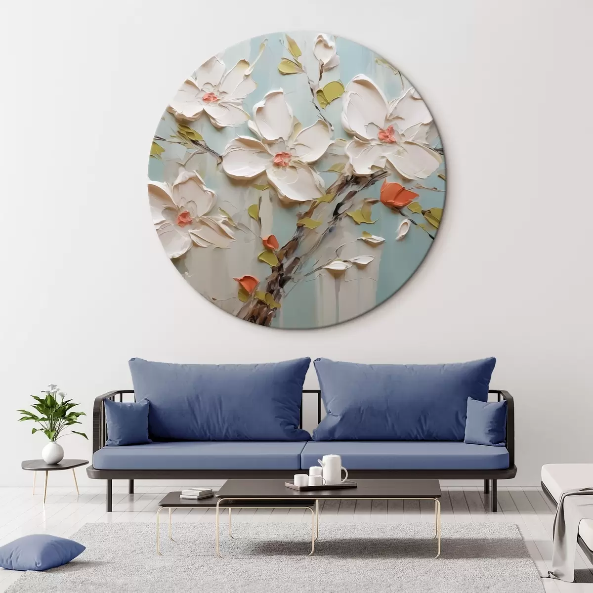 Tableaux ronds Fleurs blanches imitant les coups de peinture r42417