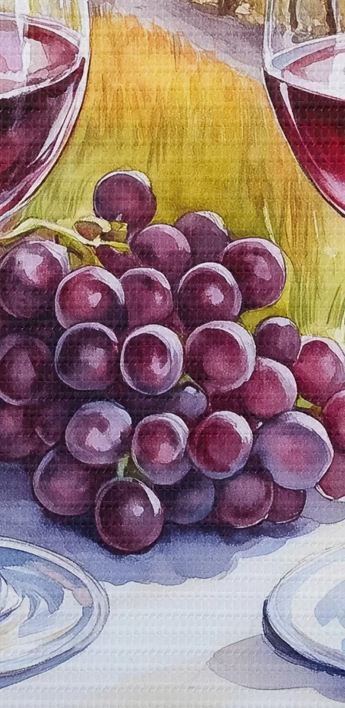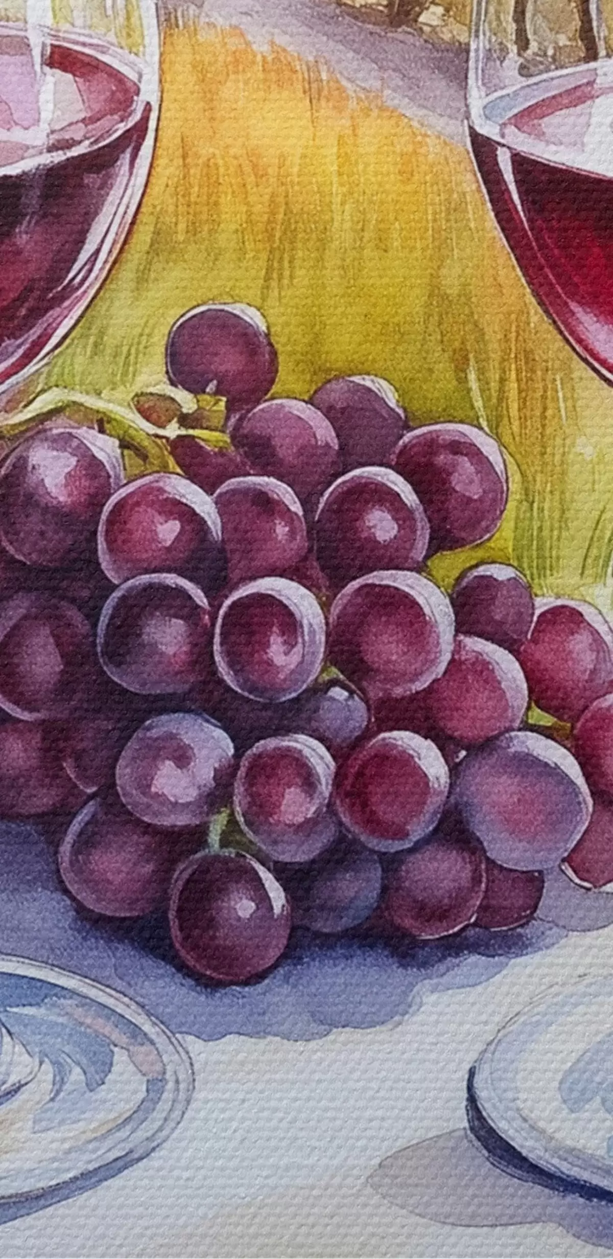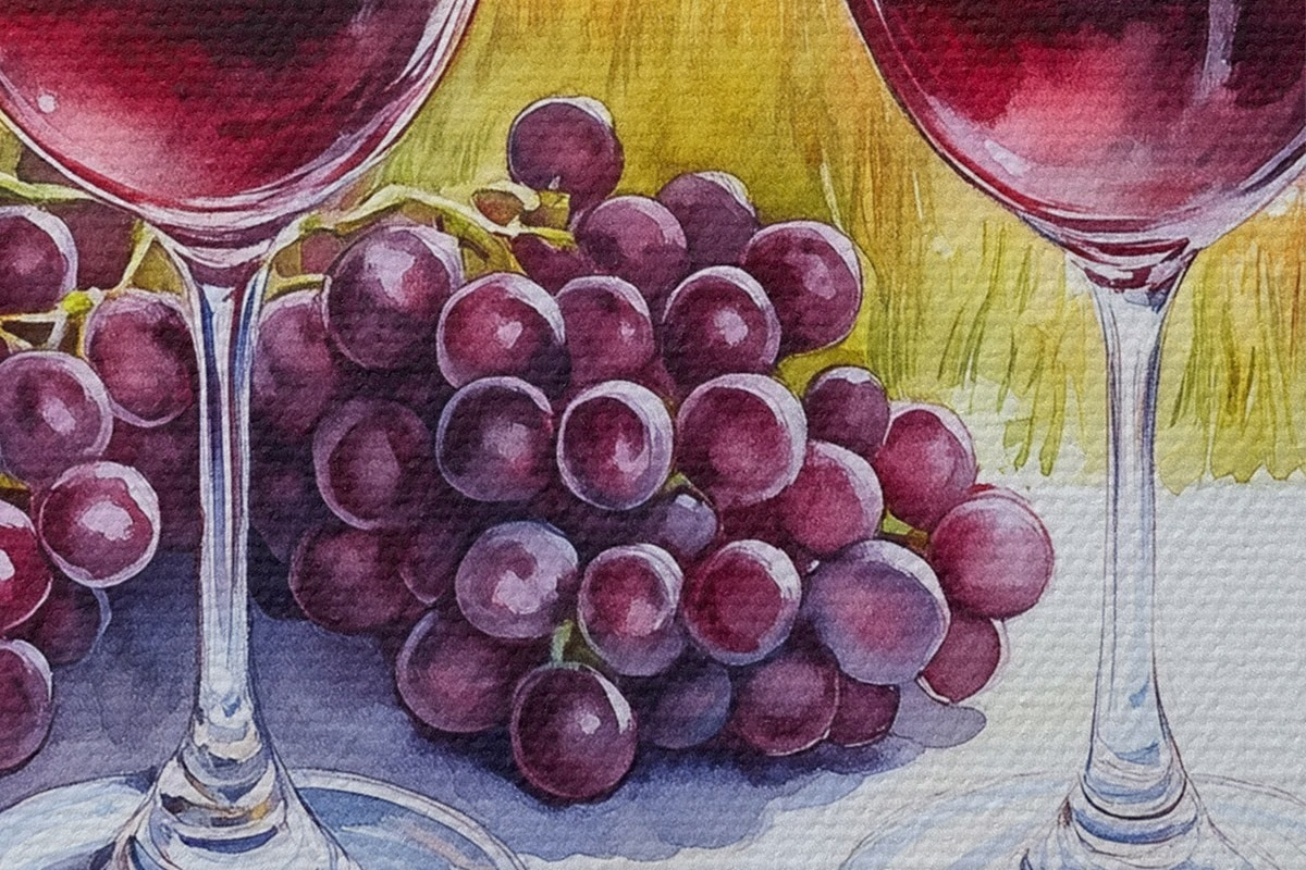 Image Paysages de Toscane, style aquarelle, verres à vin, raisins, coucher de soleil Nr r42439