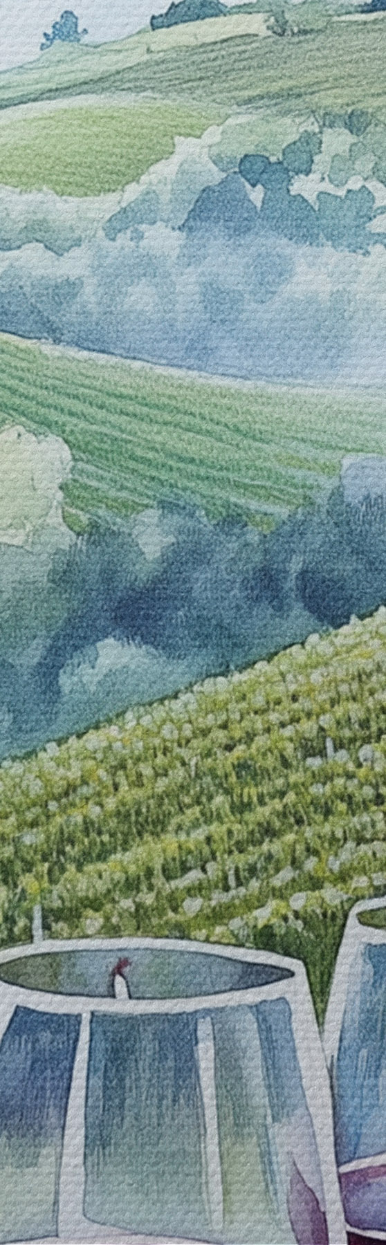 Image Paysage de Toscane, vignobles, verres à vin, style aquarelle Nr r42445