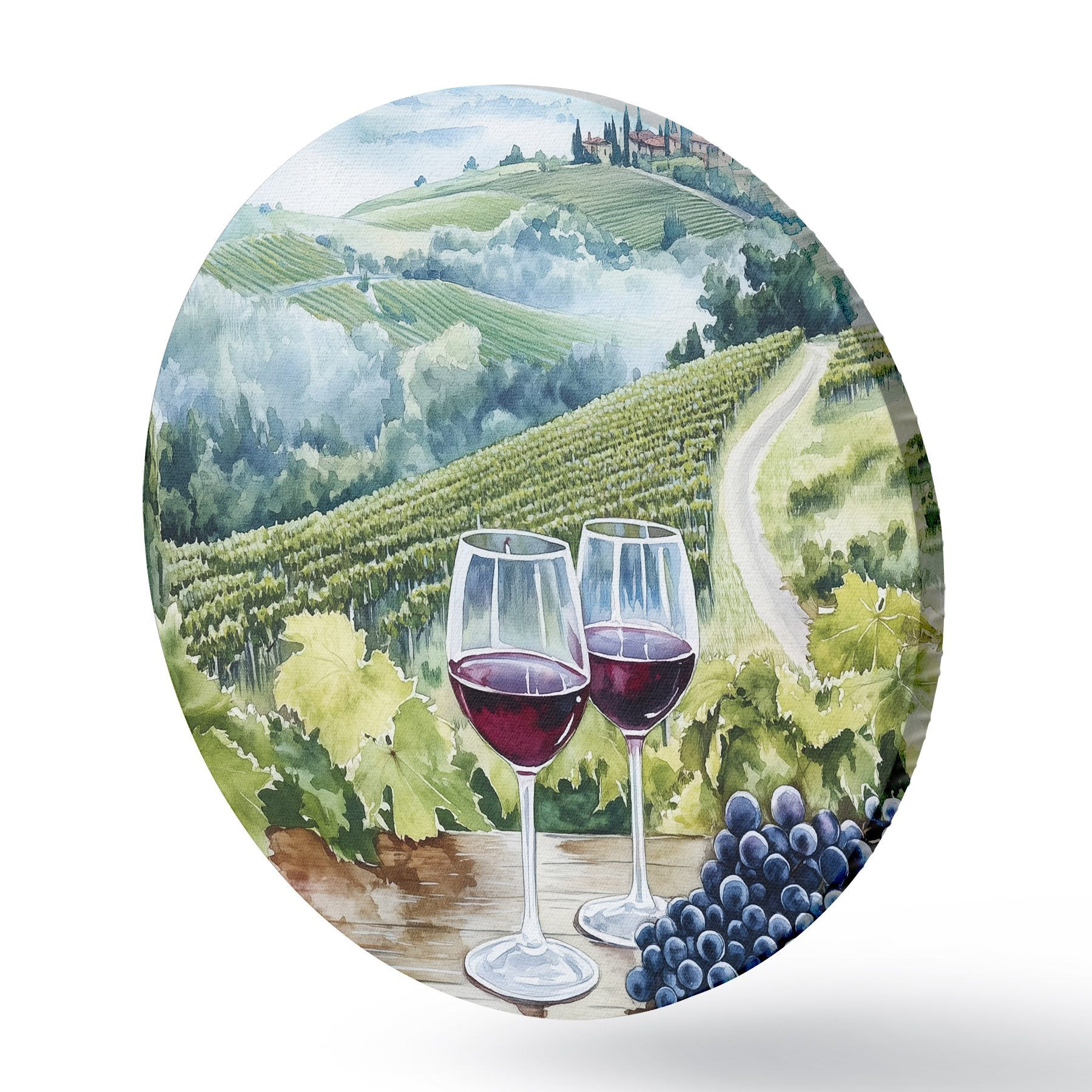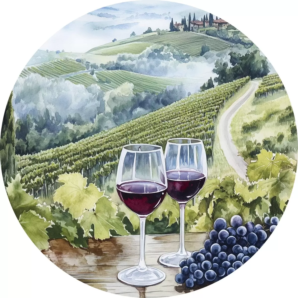 Tableaux ronds Paysage de Toscane, vignobles, verres à vin, style aquarelle r42445