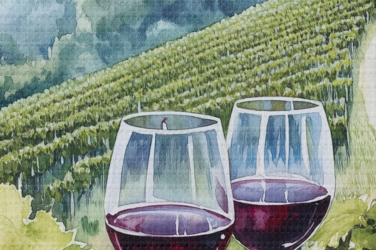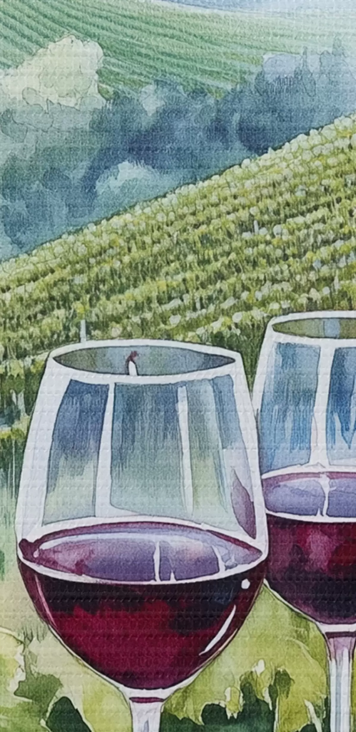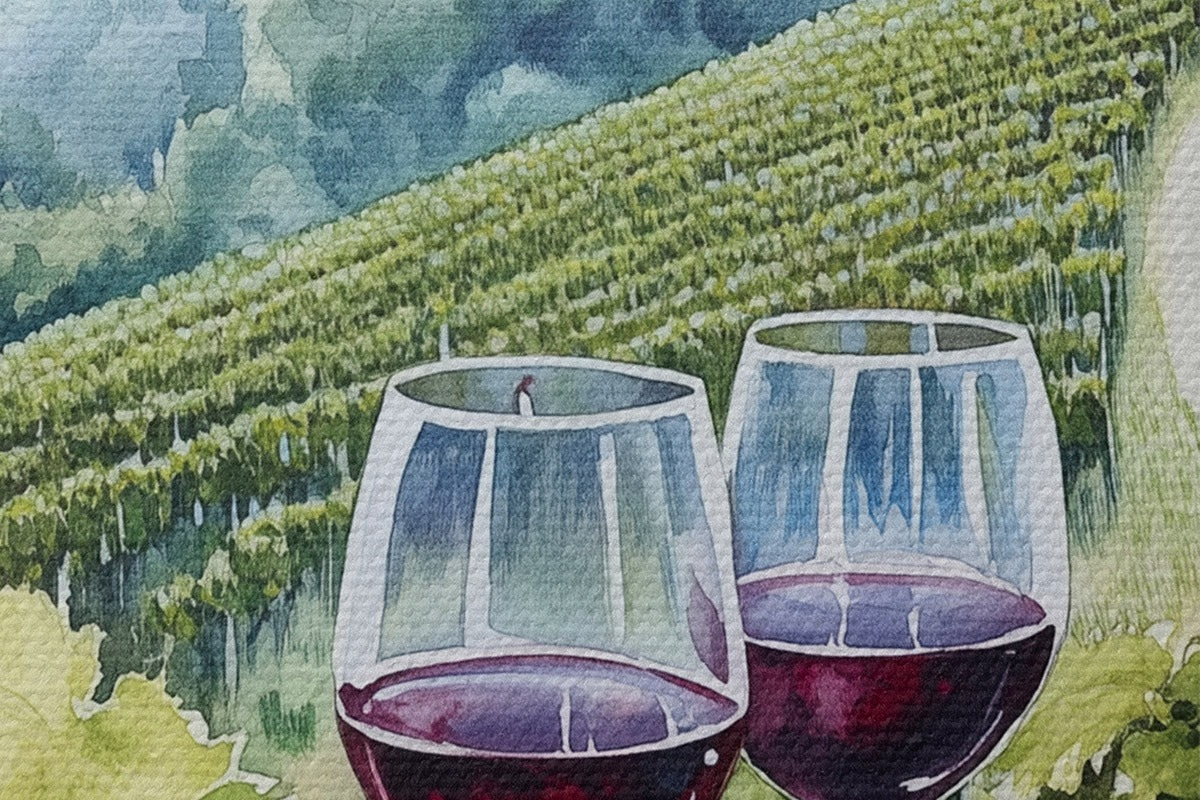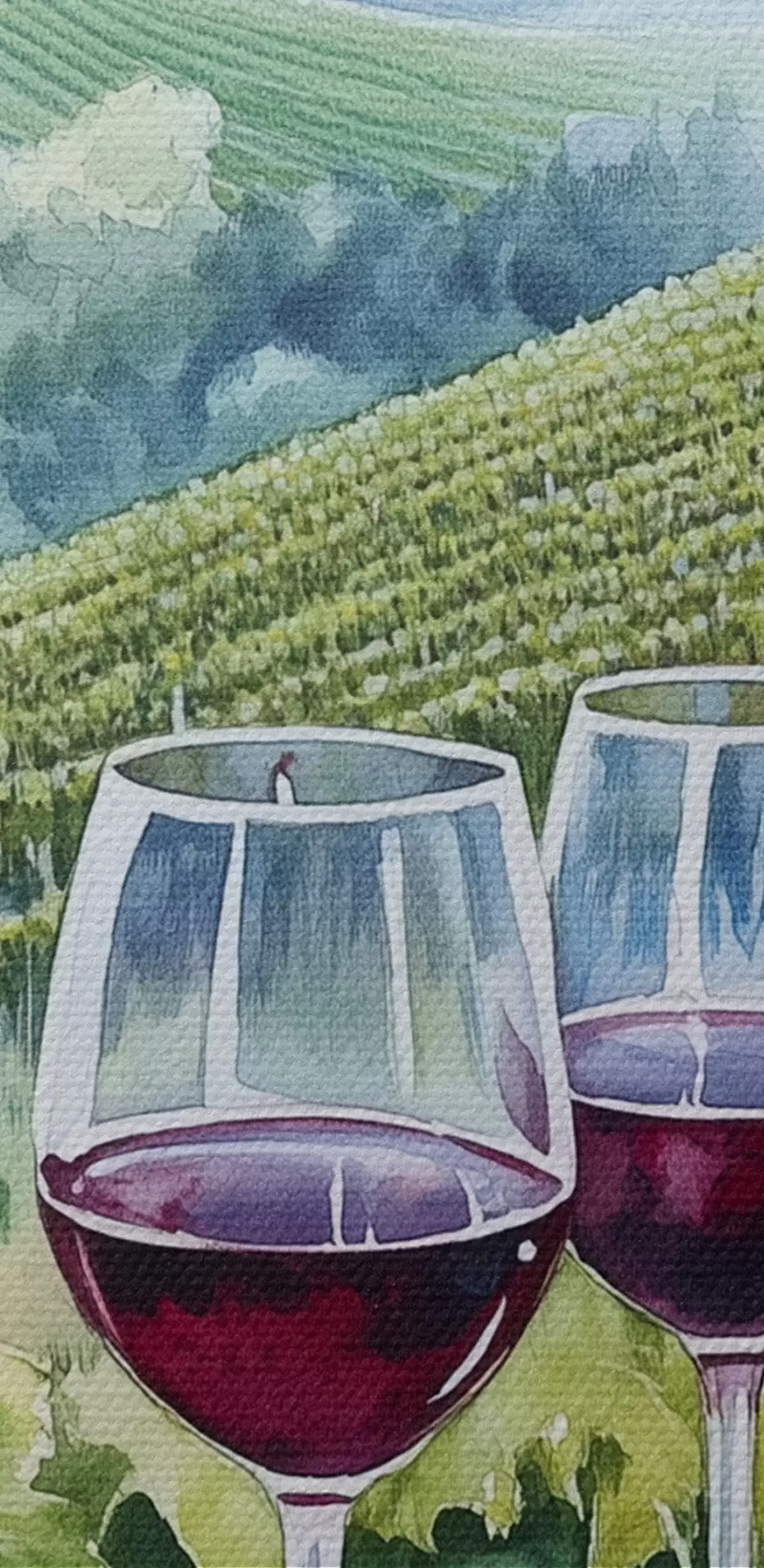 Image Paysage de Toscane, vignobles, verres à vin, style aquarelle Nr r42445