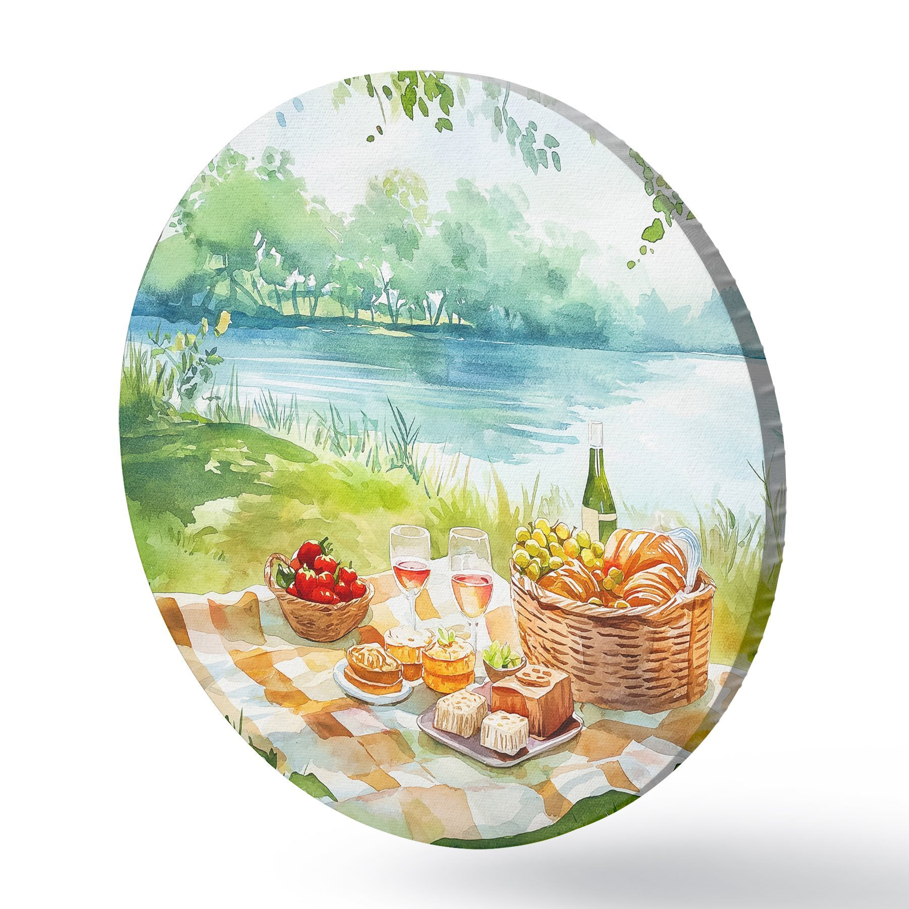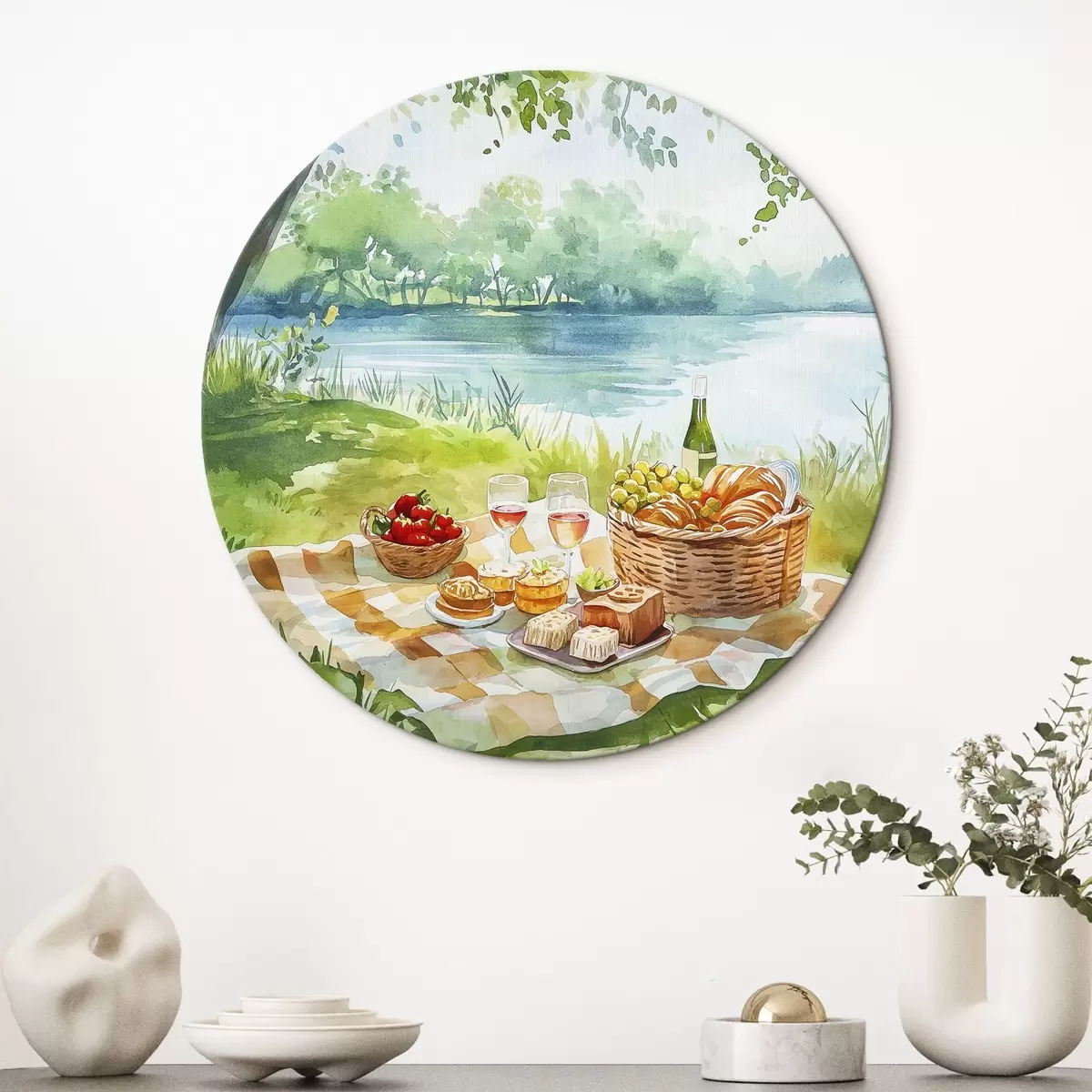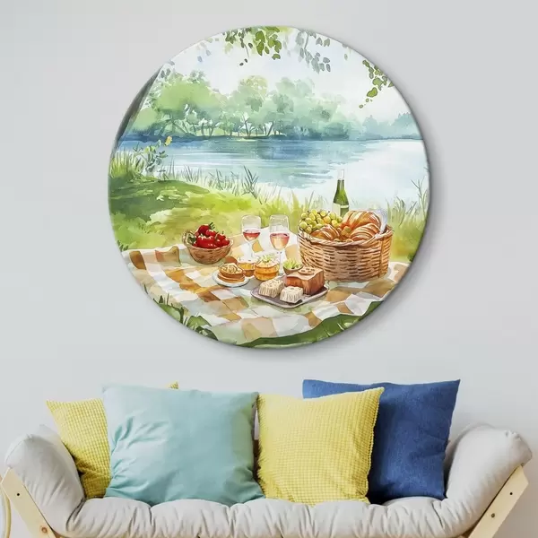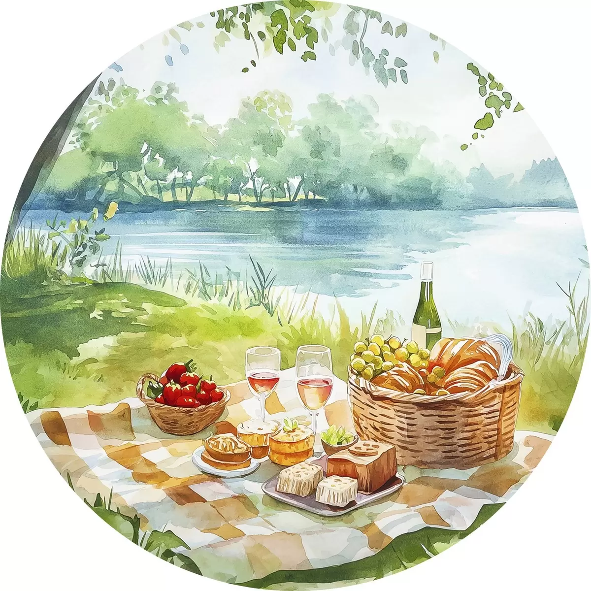 Tableaux ronds Esthétique du pique-nique, nature estivale, lac, romantique, style aquarelle r42450