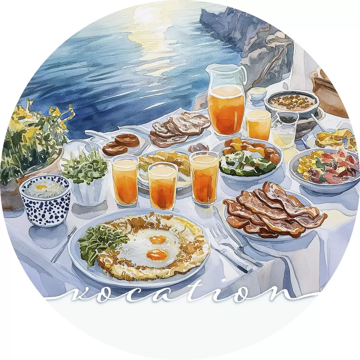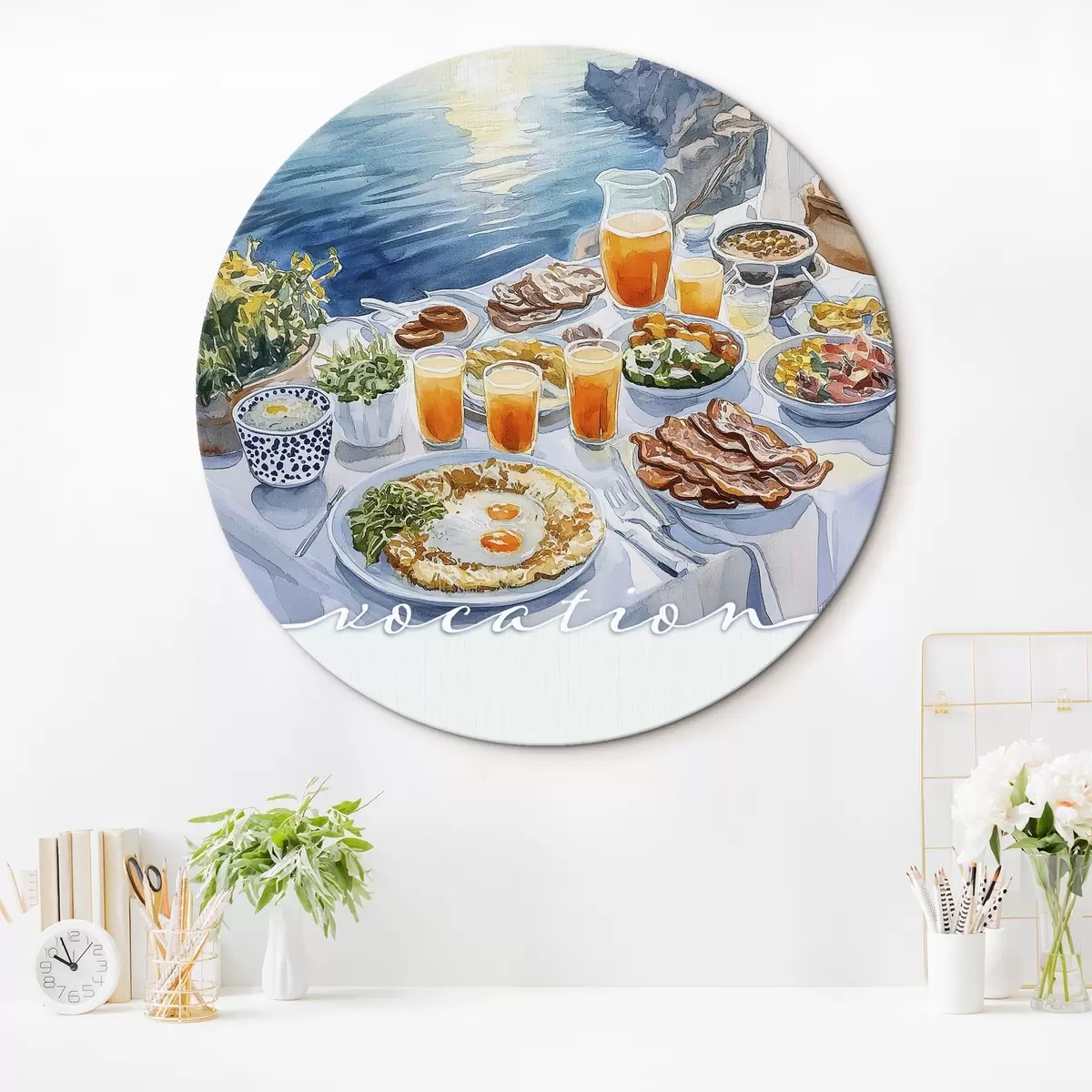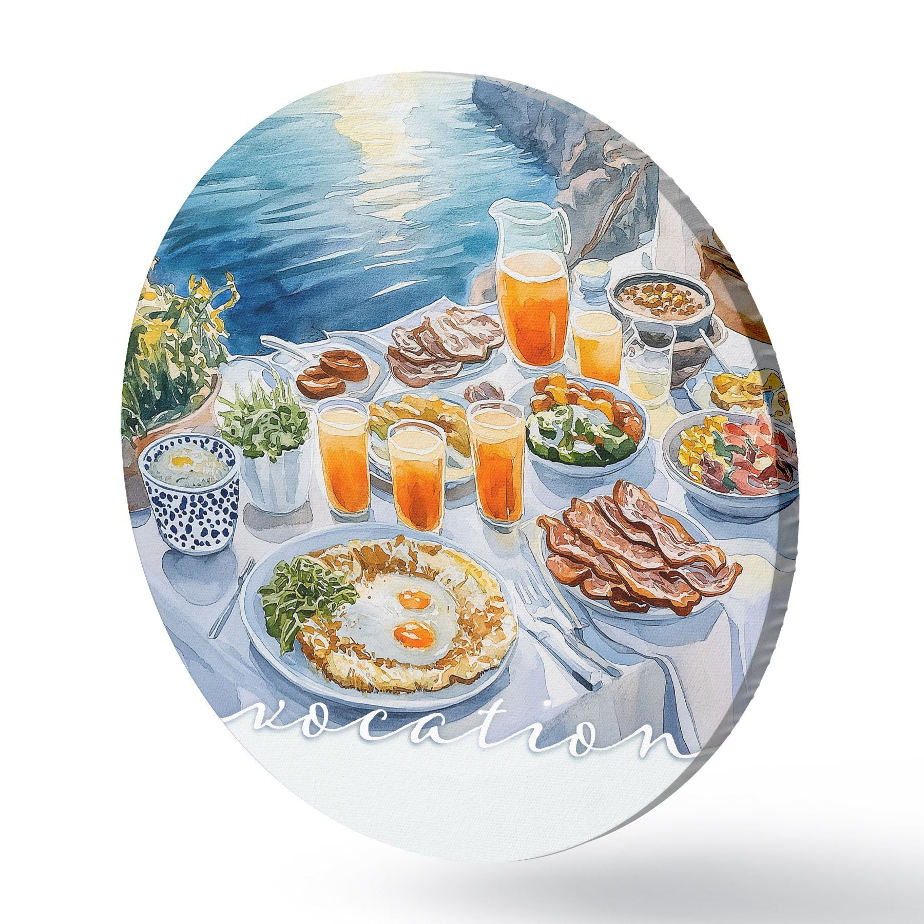 Tableaux ronds Vocation romantique en Grèce, style aquarelle, petit déjeuner, lever de soleil r42453