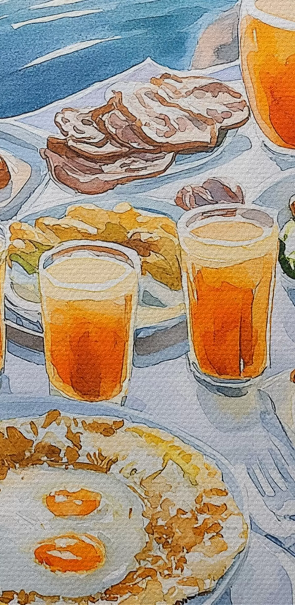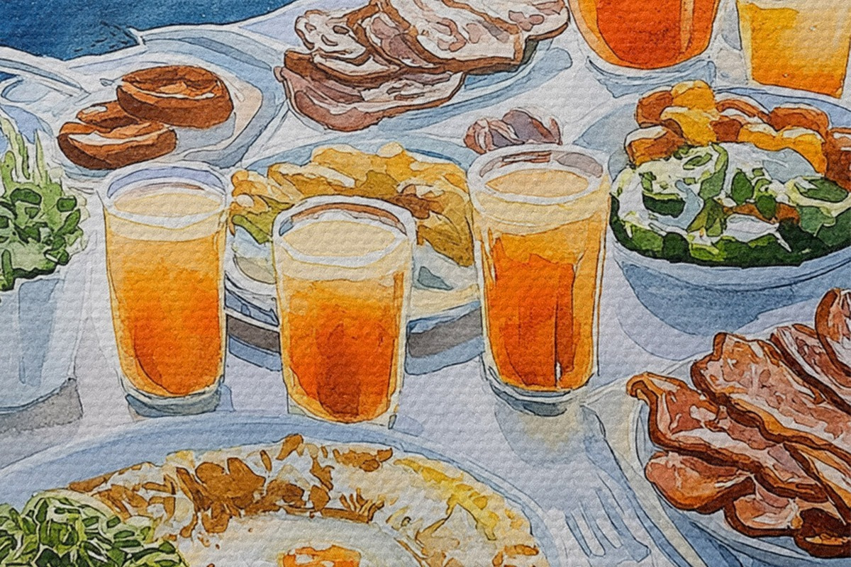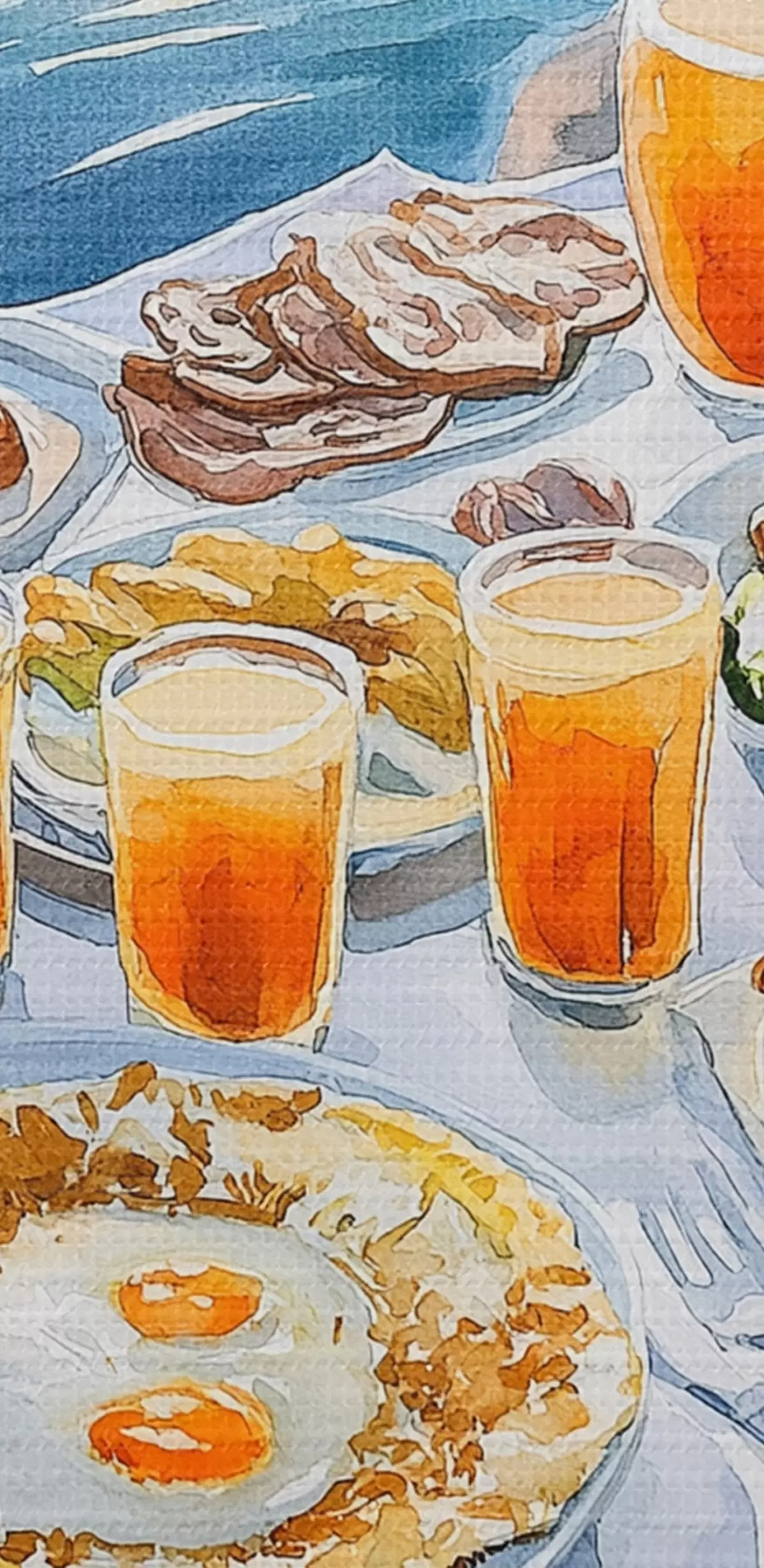 Image Vocation romantique en Grèce, style aquarelle, petit déjeuner, lever de soleil Nr r42453