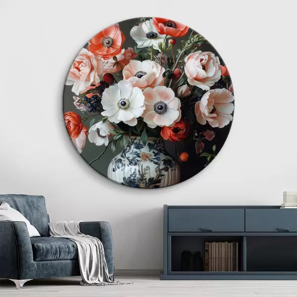 Tableaux ronds Un bouquet de belles fleurs dans un vase r42496